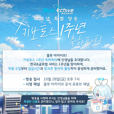 블루아카이브 오늘 1주년 특별방송함