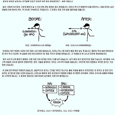 광속의 90%로 날아오는 야구공을 치려고 한다면 어떤 일이 일어날까