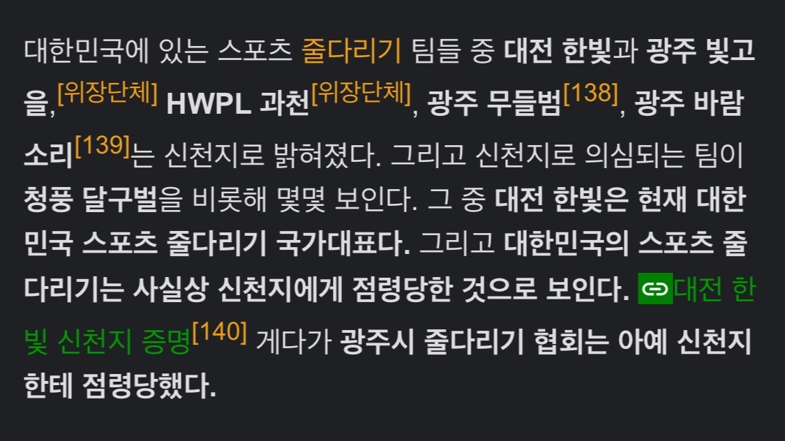 보라마키 생활의 신천지 [일반] 작성일시 : 2023. 12. 03 (13:00) 조회 : 1,967 / 댓글 : 10 지난주 생활의 달인에 나온 여자 줄다리기 전국 1위 팀 대전 한빛사실 신천지 산하의 팀이었다는군요SBS의 자료조사가 부족해서 벌어진 상황 같은데그나저나 스포츠 줄다리기는 대부분 신천지가 해먹는 상황이라니 충격이군요예전에 오징어 게임의 흥행으로 줄다리기 대회가 잠깐 알려지긴 했는데 대부분의 팀이 신천지와 연관돼 있다는 사실은 알려지지 않았다고 하네요 8추천 글쓰기스크랩 신고