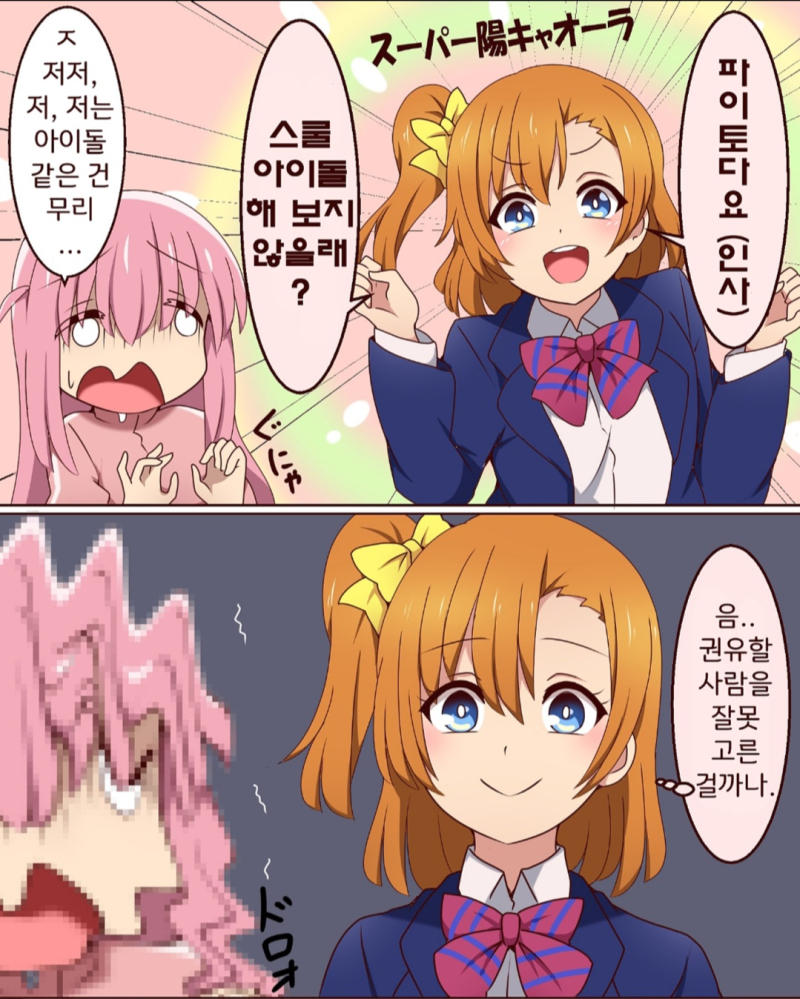 안달뷩 러브라이브 X 봇치 더 락 콜라보 팬아트~!!👍👍💕💕 [일반] 작성일시 : 2023. 12. 07 (14:49) 조회 : 2,321 / 댓글 : 10 우연히 발견했어요~!! 진짜 만약에 봇치짱이 전설의 스쿨 아이돌 만나다면 스쿨 아이돌이 될 것 같네요~!!👍👍💕💕 출처(링크) : https://www.pixiv.net/artworks/108866110 10추천 글쓰기스크랩 신고