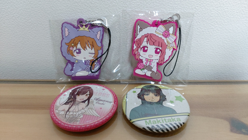 개인적으로 고양이 잠옷 버젼 텐노지 리나 키홀더 다음 다른 캐릭터들 고양이귀 잠옷 버젼도 귀엽고 캔뱃지는 아이돌 마스터 샤이니 컬러즈 오사키 아마나가 나와서 맘에 드네요.
