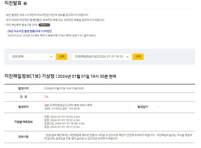타카기 일본 현재 13번째 대지진 발생 [일반] 작성일시 : 2024. 01. 01 (17:26) 조회 : 1,855 / 댓글 : 12 아니, 새해 첫날부터 이게 무슨일이람....규모 7.4 지진이면 너무 위험한데... 게다가 지진해일까지...우리나라도, 일본사람도 걱정이지만, 성우분들이 너무 걱정됩니다. ※제발 아무일도 없길 바랍니다...ㅠㅠㅠ 7추천 글쓰기스크랩 신고