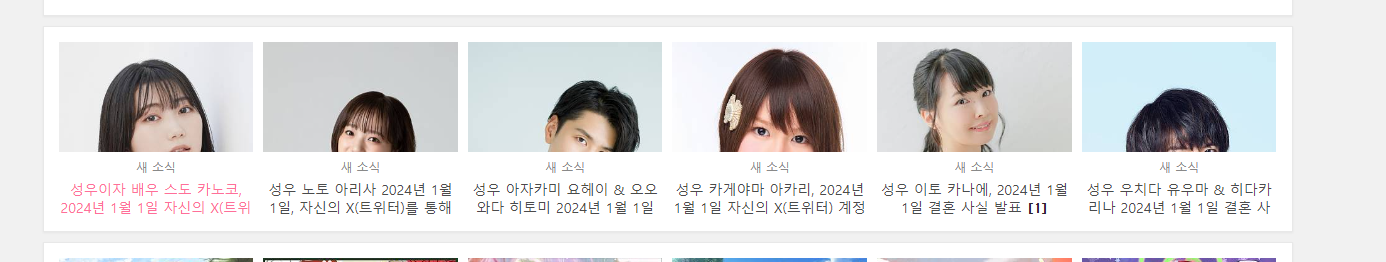 dark greed 새소식 ㅋㅋㅋㅋ [일반] 작성일시 : 2024. 01. 01 (20:11) 조회 : 1,592 / 댓글 : 2 새소식에 성우 결혼 소식만 잔뜩 있던데 ㅋㅋㅋㅋㅋ 뭔가 저렇게 잔뜩 있는거 보니깐.... 가짜 뉴스 같기도 하고아니면 진짜로 일본은 결혼 하면 결혼 발표를 1월 1일에 하는건가요? ㅋㅋㅋㅋㅋ 5추천 글쓰기스크랩 신고