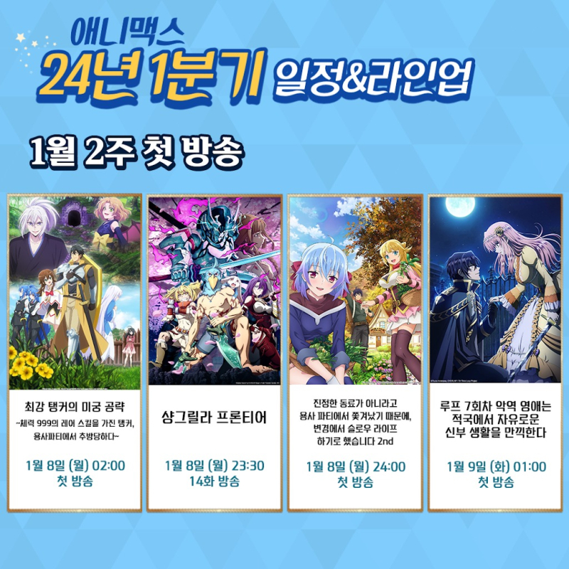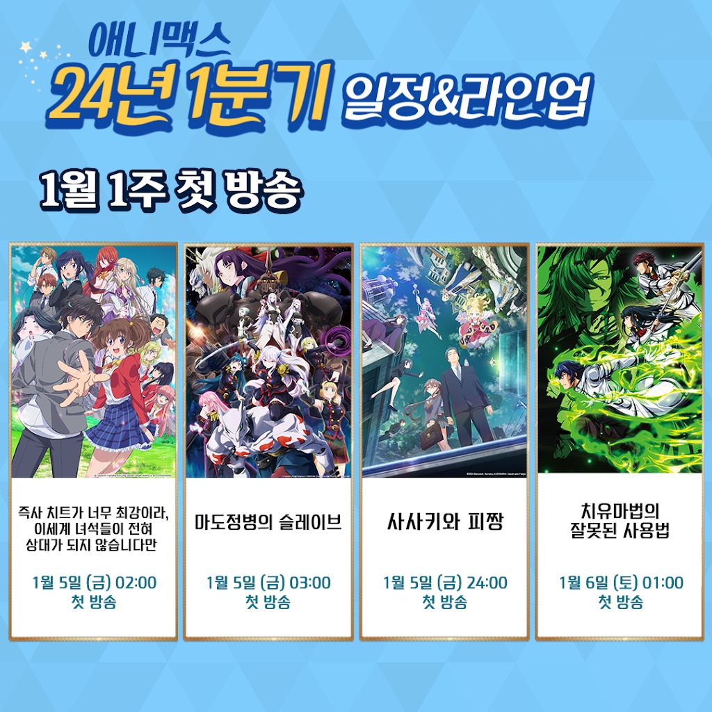 타카기 [애니맥스] 2024년 1분기 애니 공개!! [애니] 작성일시 : 2024. 01. 03 (13:34) 조회 : 1,597 / 댓글 : 3 음... 슬로우 라이프 2기 애니맥스에서 하는건 당연하겠지만...그 외에 볼 건 없네요. 6추천 글쓰기스크랩 신고