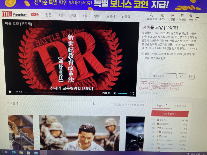 보라마키 배틀로얄 봤어요 [일반] 작성일시 : 2024. 02. 10 (11:24) 조회 : 1,266 / 댓글 : 2 미소설 프리미엄 7일 체험권 받은 걸로 봤습니다게임 리워드 무료 재화 때문에 이용권 받았고엄청 잔인하긴 한데 내용은 재밌었네요특히 마지막 대사가 기억에 남는군요그리고 월정액 결제되기 전에 해지할려는데...해지 사유 선택지가 ㅋㅋㅋㅋ군대영장 하드디스크까진 이해하는데 지구 온난화에 외계인 침공 축제를 떠나기 위한 절차까지...너무 뜬금없어서 뿜었습니다참고로 제가 처음본 청불영화가 이것... 4추천 글쓰기스크랩 신고