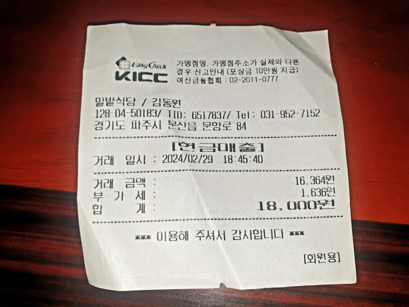 팜유재원이 밀밭식당 칼국수 & 비빔국수 [일반] 작성일시 : 2024. 03. 01 (11:21) 조회 : 1,623 / 댓글 : 3 어제 목요일 저녁은 오랜간만에 경기 파주시 문산읍에 있는 1983년 41년 전통 밀밭식당에 다녀왔다~ 칼국수 9000원 + 비빔국수 9000원 = 18000원이란다~ 맛있게 먹었는데 매콤하더라구~ 21추천 글쓰기스크랩 신고