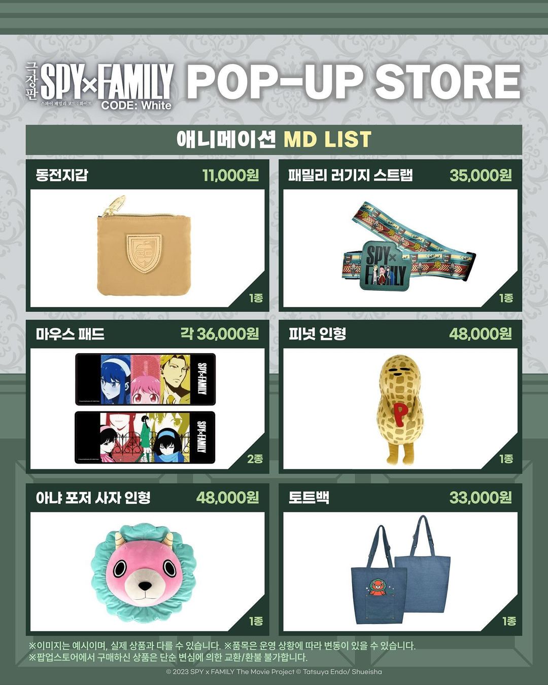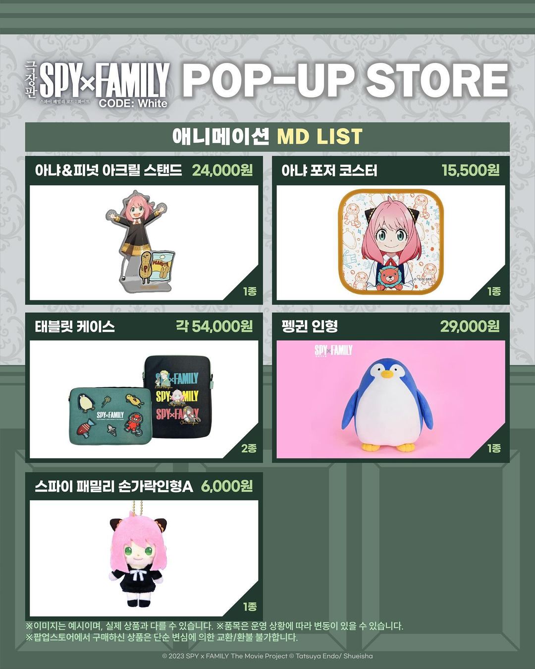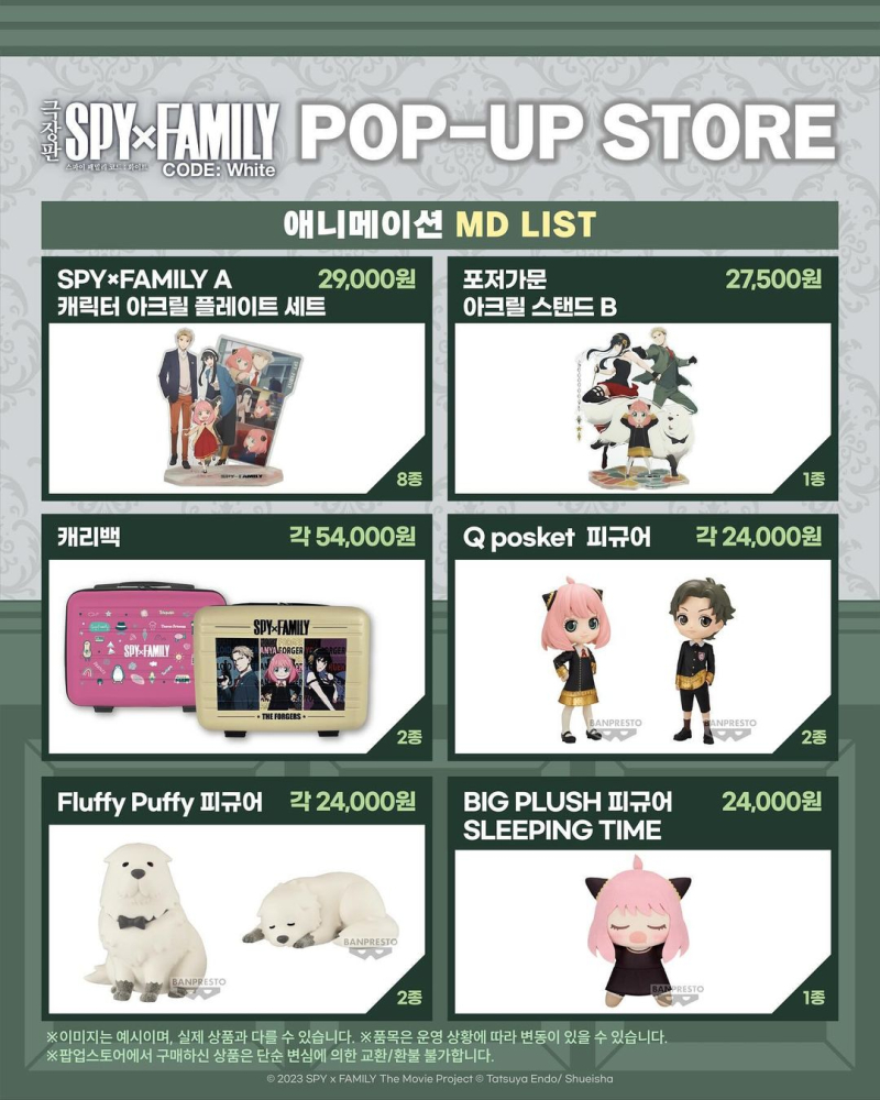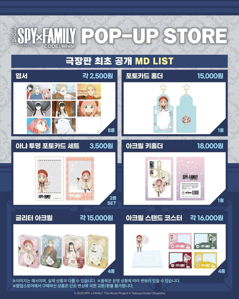 타카기 "극장판 스파이 패밀리" 팝업스토어 안내 [굿즈] 작성일시 : 2024. 03. 09 (13:23) 조회 : 1,933 / 댓글 : 10 와아... 다 귀한것들이네요. ※하나씩 사고싶다... 하지만, 돈이 없어서 사고싶어도 못사지만...ㅠㅠㅠ 12추천 글쓰기스크랩 신고
