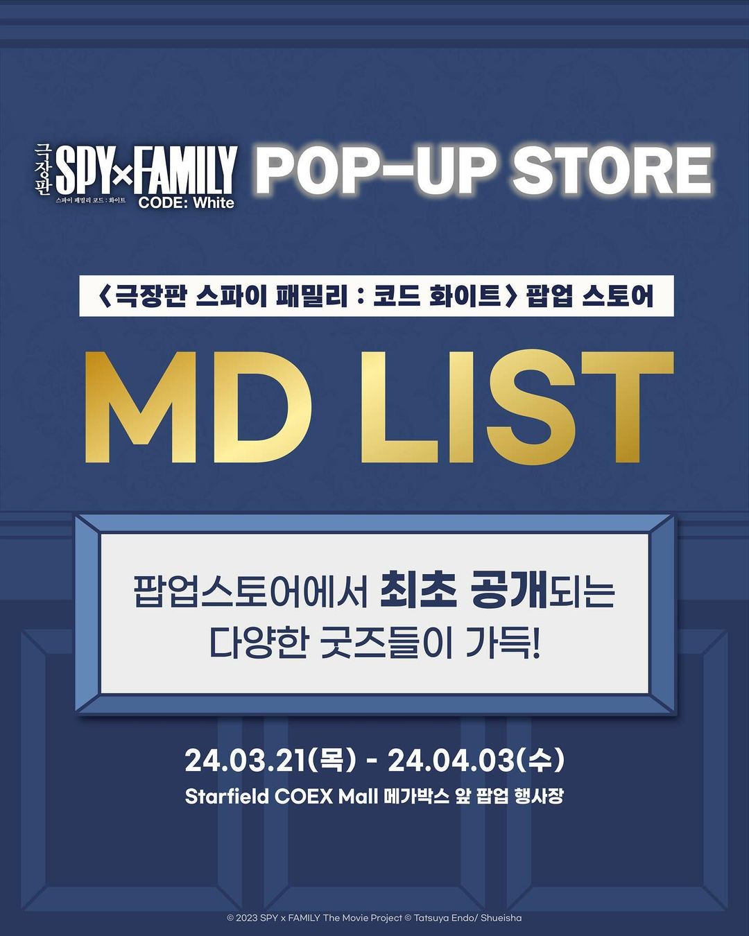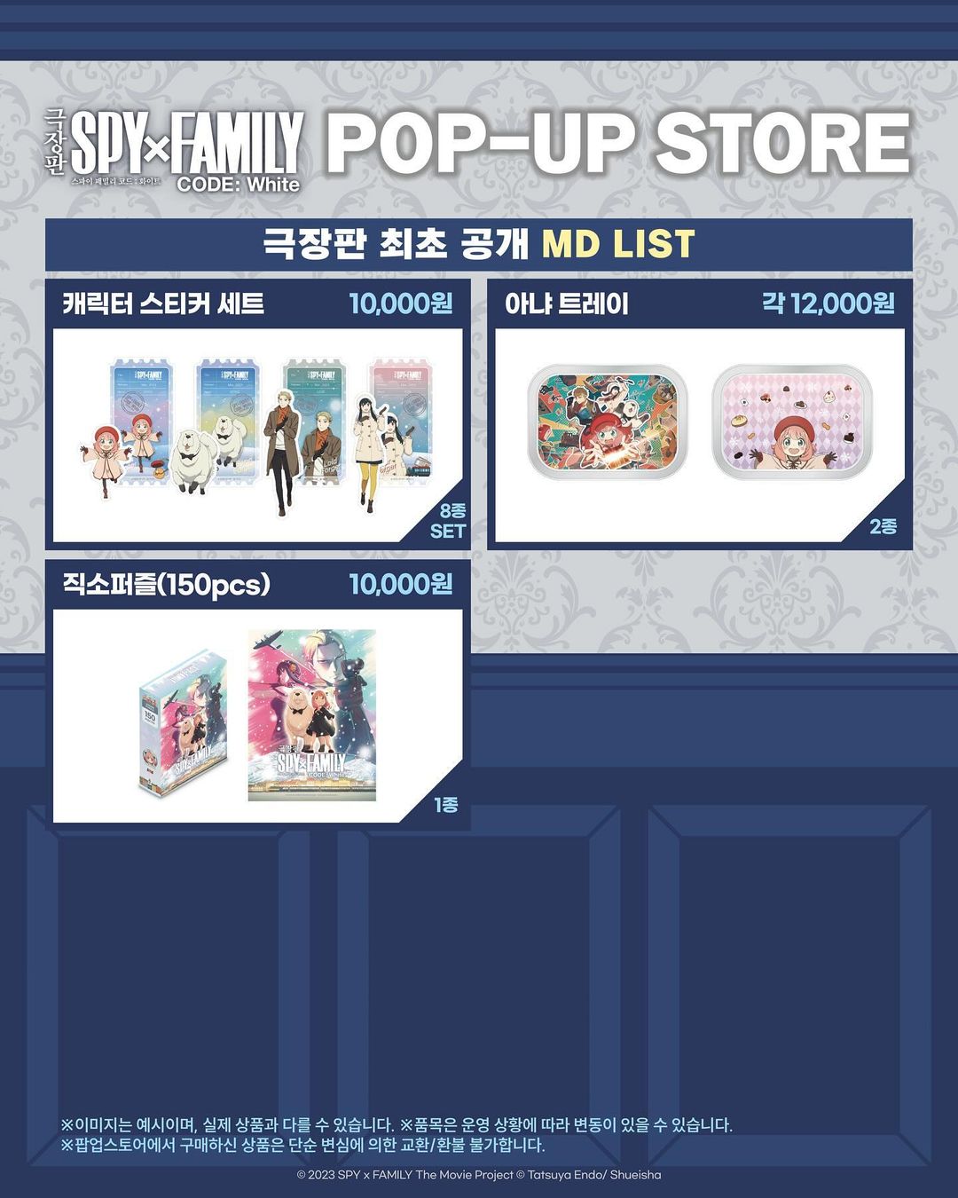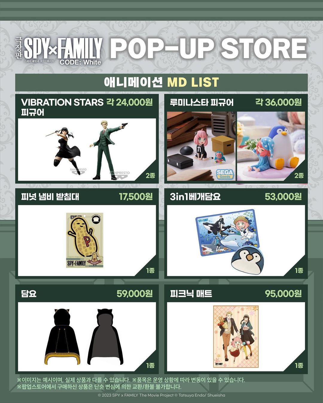 타카기 "극장판 스파이 패밀리" 팝업스토어 안내 [굿즈] 작성일시 : 2024. 03. 09 (13:23) 조회 : 1,933 / 댓글 : 10 와아... 다 귀한것들이네요. ※하나씩 사고싶다... 하지만, 돈이 없어서 사고싶어도 못사지만...ㅠㅠㅠ 12추천 글쓰기스크랩 신고