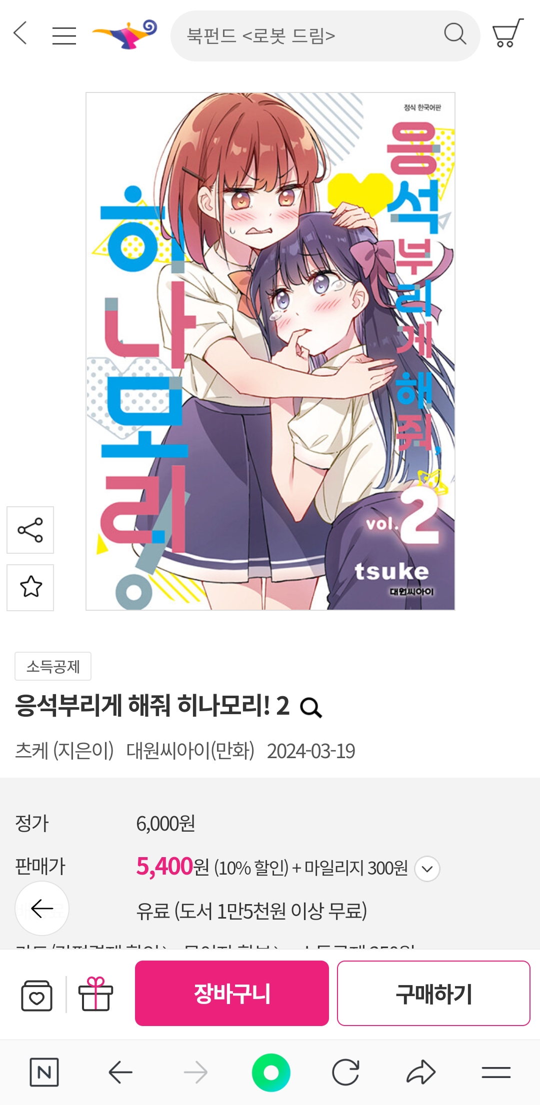 평범한송 이 백합 만화책 2권 정발하군요!~ [코믹] 작성일시 : 2024. 03. 18 (20:37) 조회 : 1,058 / 댓글 : 2 응석부리게 해줘 히나모리 백합만화인데 국내에서 1권은 정발했는데요.오늘 알라딘에서 신간 만화책 찾다가 이 백합만화가 2권 정발했더군요.개인적으로 이 백합 만화 작화가 맘에 들어서 오늘 1권 3개를 주문한 기억이 나는데 이제 2권 구입할까 생각중이네요. 3추천 글쓰기스크랩 신고