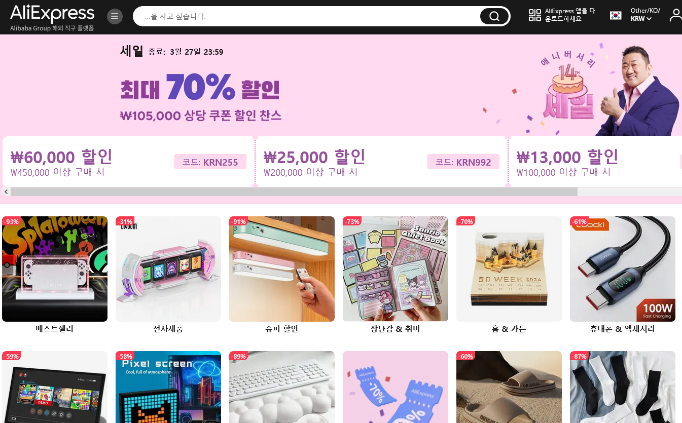 토모키 요즘 알리 할인기간이네요 [일반] 작성일시 : 2024. 03. 19 (23:17) 조회 : 1,431 / 댓글 : 2 평소에도 싼데 미쳤습니다 출처(링크) : https://ko.aliexpress.com/ 4추천 글쓰기스크랩 신고