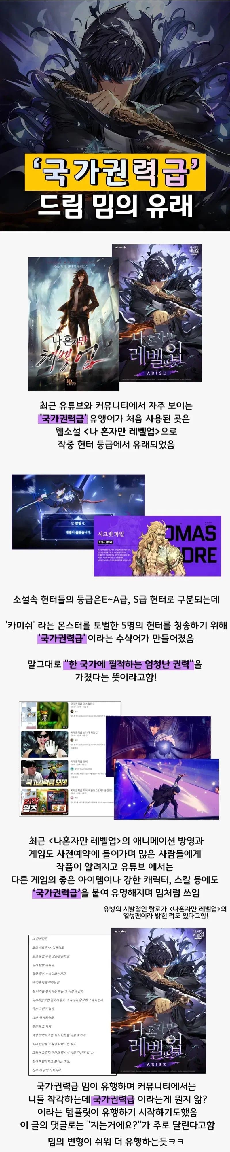 카톡 국가 권력 밈의 시초 [일반] 작성일시 : 2024. 04. 01 (17:57) 조회 : 1,567 / 댓글 : 1 랄로가 유행시킨 인방밈인 줄 알았는데 여태...나혼렙이었다니;; 출처(링크) : https://m.bboom.naver.com/board/get?boardNo=9&postNo=4100690 5추천 글쓰기스크랩 신고