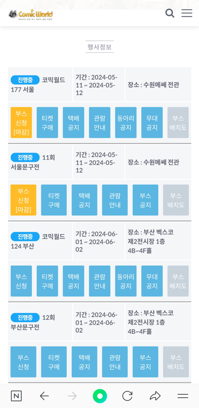 평범한송 6월 부코 입장권 예매 가능하군요. [일반] 작성일시 : 2024. 04. 06 (19:20) 조회 : 1,040 / 댓글 : 2 6월 부코 개최될려면 2달 남았는데요.코믹월드 홈페이지에 들어가보니 6월 부코 입장권 예매 가능하나군요. 4추천 글쓰기스크랩 신고
