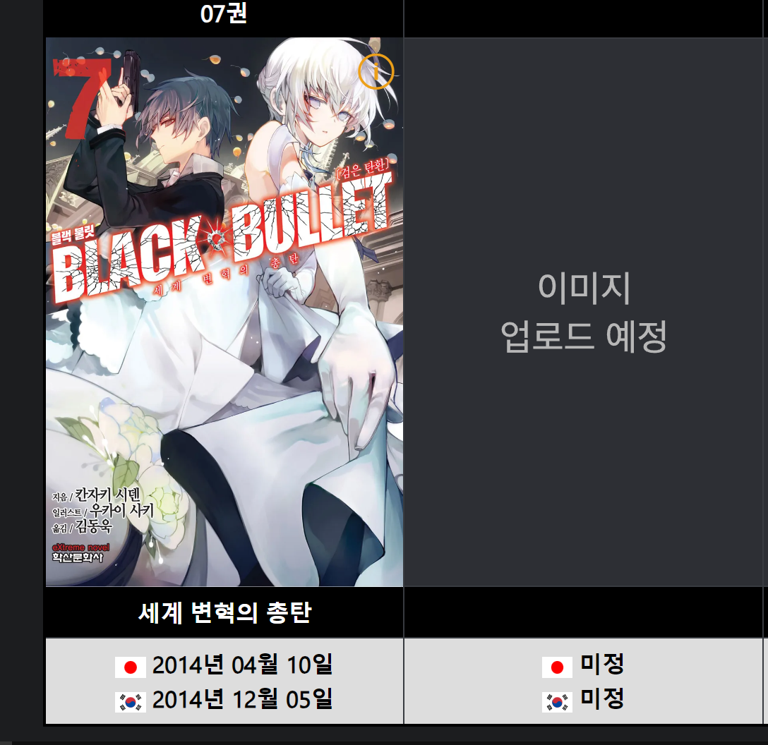 이카무스메 블랙불릿 벌써 10년이 지났었군요; [라이트노벨] 작성일시 : 2024. 04. 28 (15:10) 조회 : 1,504 / 댓글 : 3 블랙 불릿 한때 미치도록 잼있게 봤는데7권 후로.... 더이상 없습니다엔쥬쨩. 티나쨩. 6추천 글쓰기스크랩 신고