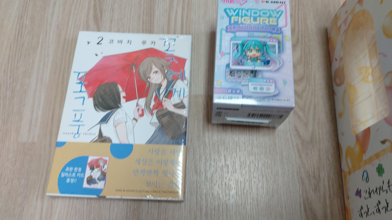 먼저 구입한 만화책은 꽃에게 폭풍 2권이고 백합물이며 구입한 피규어는 하츠네 미쿠 윈도우 피규어 랜덤 상품입니다.