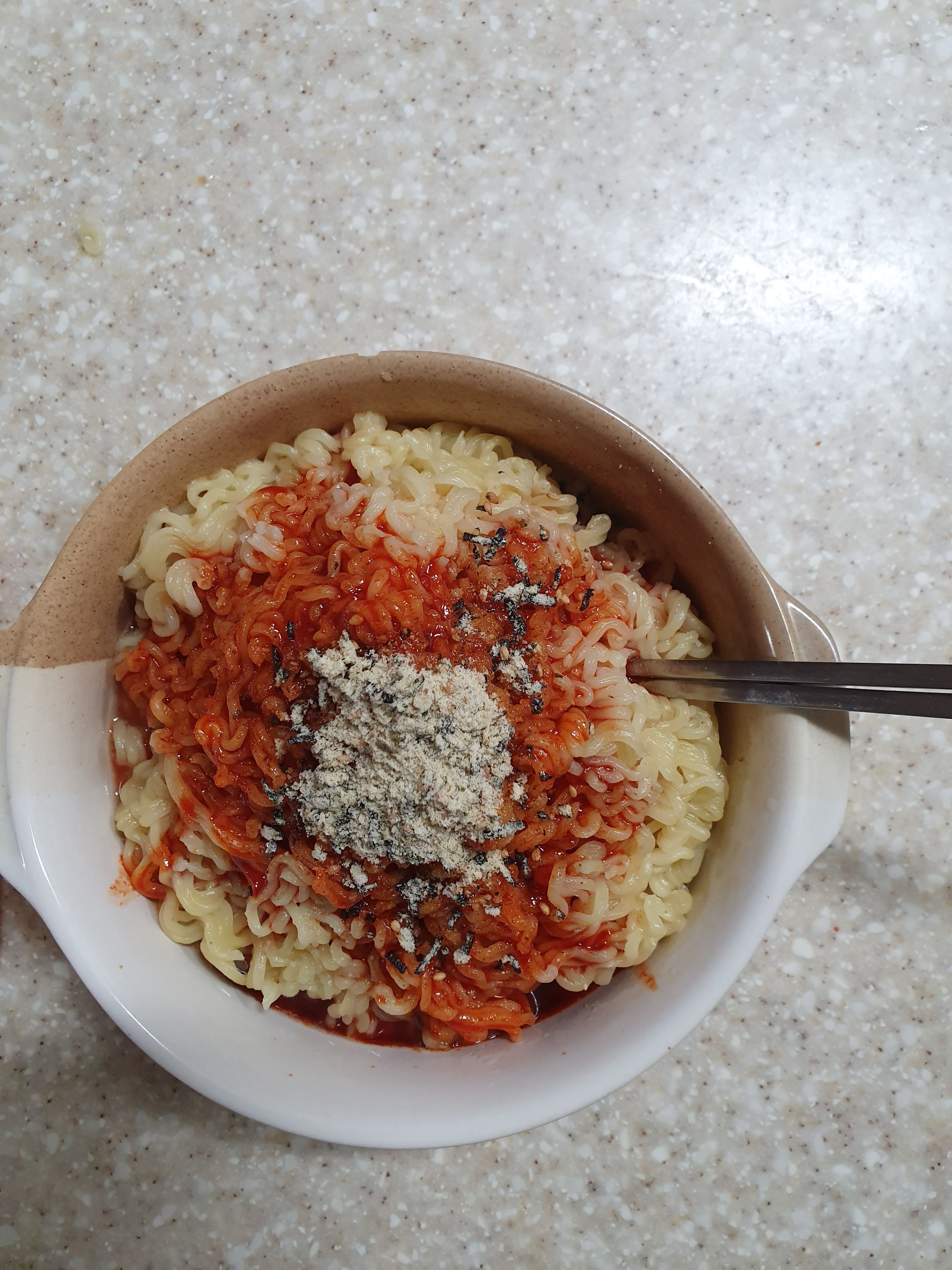 미스터스틱 오뚜기 진비빔면 [일반] 작성일시 : 2024. 06. 02 (19:31) 조회 : 1,398 / 댓글 : 2 참깨고명스프가 가루랑 김이랑 섞여졌습니다.냄비에 면부터 건져 옮겨 담았더니 물이 좀 있었지만요. 13추천 글쓰기스크랩 신고