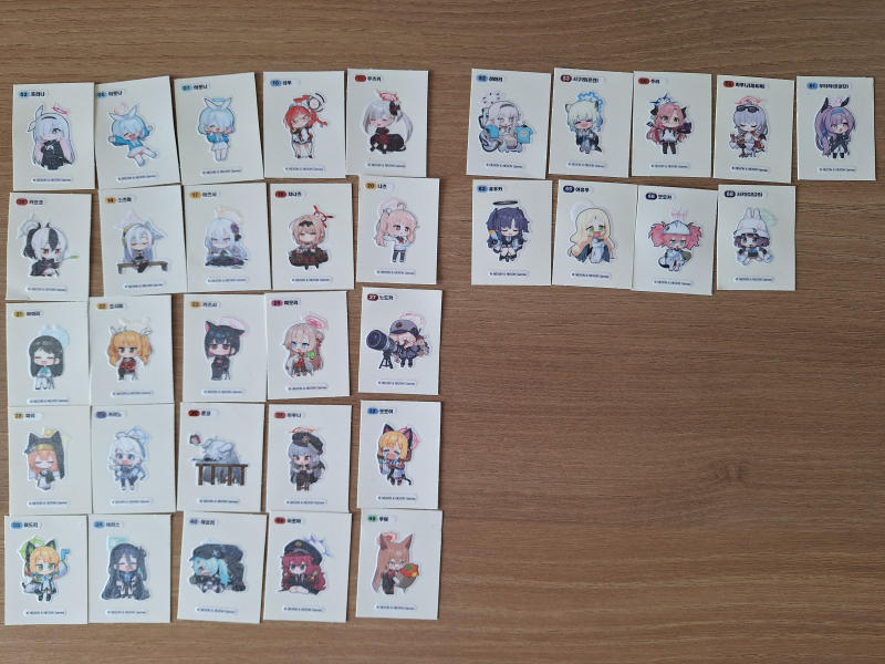 타카기 5월 5일부터 지금까지 모은 블루 아카이브 띠부실들 [일반] 작성일시 : 2024. 06. 05 (13:29) 조회 : 1,514 / 댓글 : 13 종류별 34개 중복 띠부실들 제가 처음으로 블카빵 산게 한달전이였는데, 총 34종류나 모았네요. 블카 띠부실 종류가 71개 라고 들었는데,34개나 모았으니까.... 37개만 모으면 미션 완료네요. ※37개 언제 다모으지... 10추천 글쓰기스크랩 신고