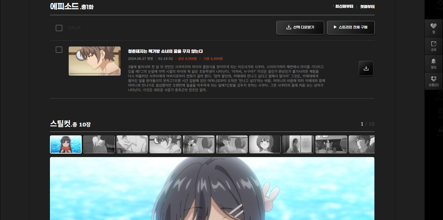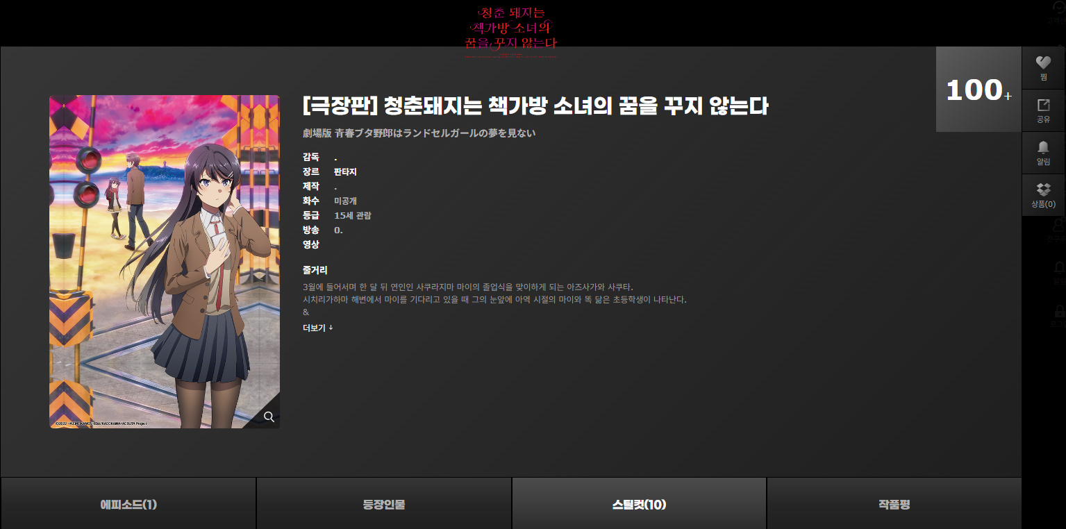 타카기 "청춘돼지는 책가방 소녀의 꿈을 꾸지 않는다" 애니플러스에서 공개!! [애니] 작성일시 : 2024. 06. 27 (13:51) 조회 : 1,597 / 댓글 : 2 4개월전에 보러갔던 책가방 소녀가 오늘 애니플러스에서 공개되었습니다.이거, 재밌게 봤었는데, 갑자기 또 보고싶어지는군.^^ 그리고, 움짤도 만들어 놨는데, 오늘 저녁에 올리려고 합니다.움짤수는 39개이고, 10장 올릴 예정입니다. ※혹시, 오늘 움짤 올리는데에 문제 있으시다면, 바로 글 남겨주시길 바랍니다. 출처(링크) : https://www.aniplustv.com/items/3279 9추천 글쓰기스크랩 신고