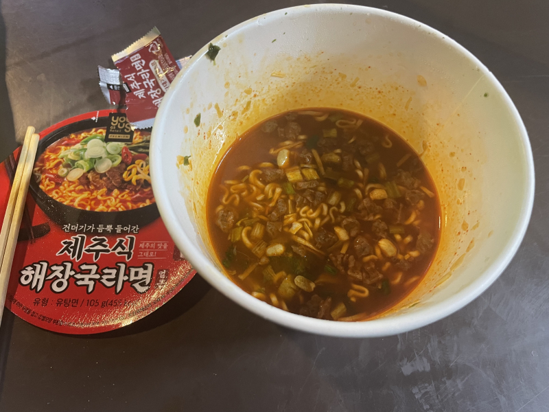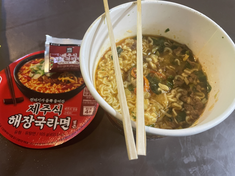 보라마키 제주식 해장국라면! [일반] 작성일시 : 2024. 07. 02 (03:17) 조회 : 1,348 / 댓글 : 1 GS25에서만 만날 수 있는 제주도식 해장라면얼큰하먄서도 많이 맵지 않아 맛이 좋네요!!현지처럼 푸짐하진 않지만 건더기가 보통 라면보다 많아서 좋네요! 5추천 글쓰기스크랩 신고