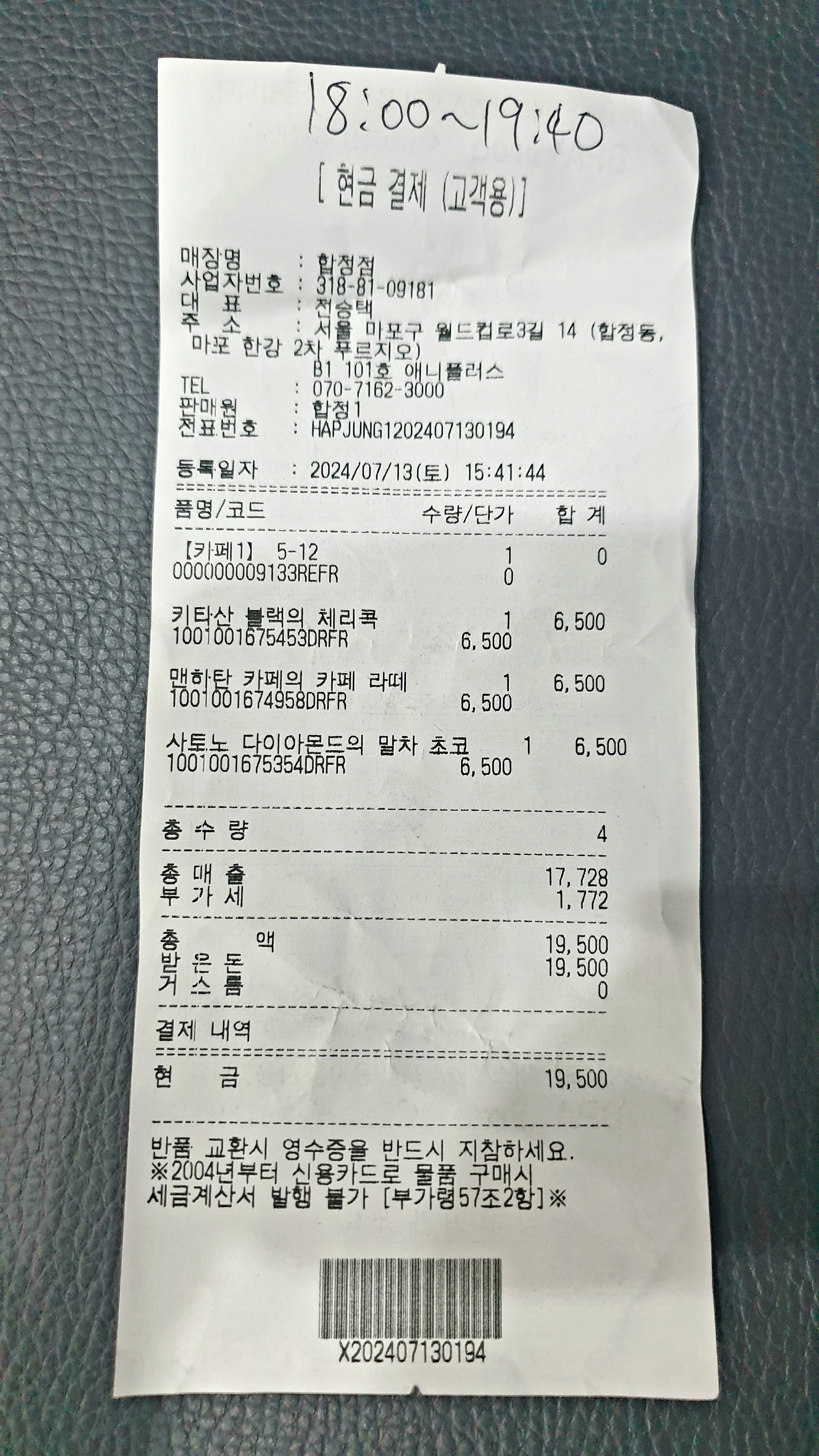 나는 키타산 블랙의 체리콜라 6500원, 맨하탄 카페의 카페라떼 6500원, 사토노 다이아몬드의 말차 초코라떼 6500원인데 맛을 보았음! 가격이 합쳐서 19500원이란다~