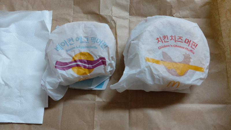 평범한송 맥도날드 햄버거 2개 [일반] 작성일시 : 2024. 10. 13 (09:36) 조회 : 1,407 / 댓글 : 5 아침은 먹은 상태지만 그냥 오전에 맥도날드에 가서 햄버거 2개 사왔습니다.베이컨 에그 맥머핀 1개와 치킨 치즈 머핀 1개를 사왔고 포장 주문을 했는데요.집와서 이 햄버거 2개를 먹어보니 생각보다 맛있더군요! 12추천 글쓰기스크랩 신고