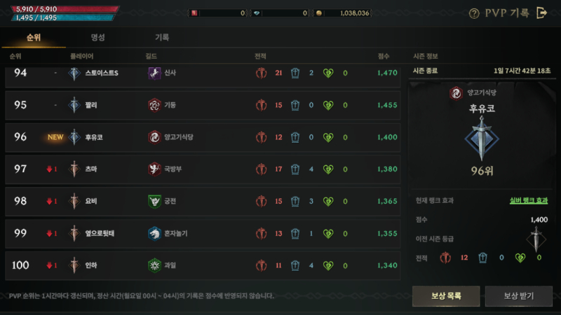 여러 공략들을 보면서 PK도 하면서 PK 랭킹 100순위 안에도 들어보고 하면서 게임을 하다가