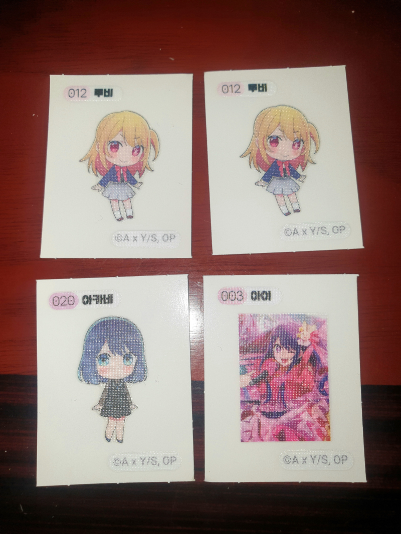 팜유재원이 최애의 아이 빵 4개 구입획득! [일반] 작성일시 : 2024. 10. 21 (08:00) 조회 : 1,327 / 댓글 : 1 지난 토요일 심부름 받고 할매 용돈 5만원으로 최애의 아이 빵 4개 샀음! 맛있게 먹고~ 최애의 아이 띠부실 4개 획득했다오!호시노 루비 귀엽지~ 쿠로카와 아카네 귀엽지~ 호시노 아이 획득했다오~이번엔 엄마와 딸이라오~^.^ 13추천 글쓰기스크랩 신고