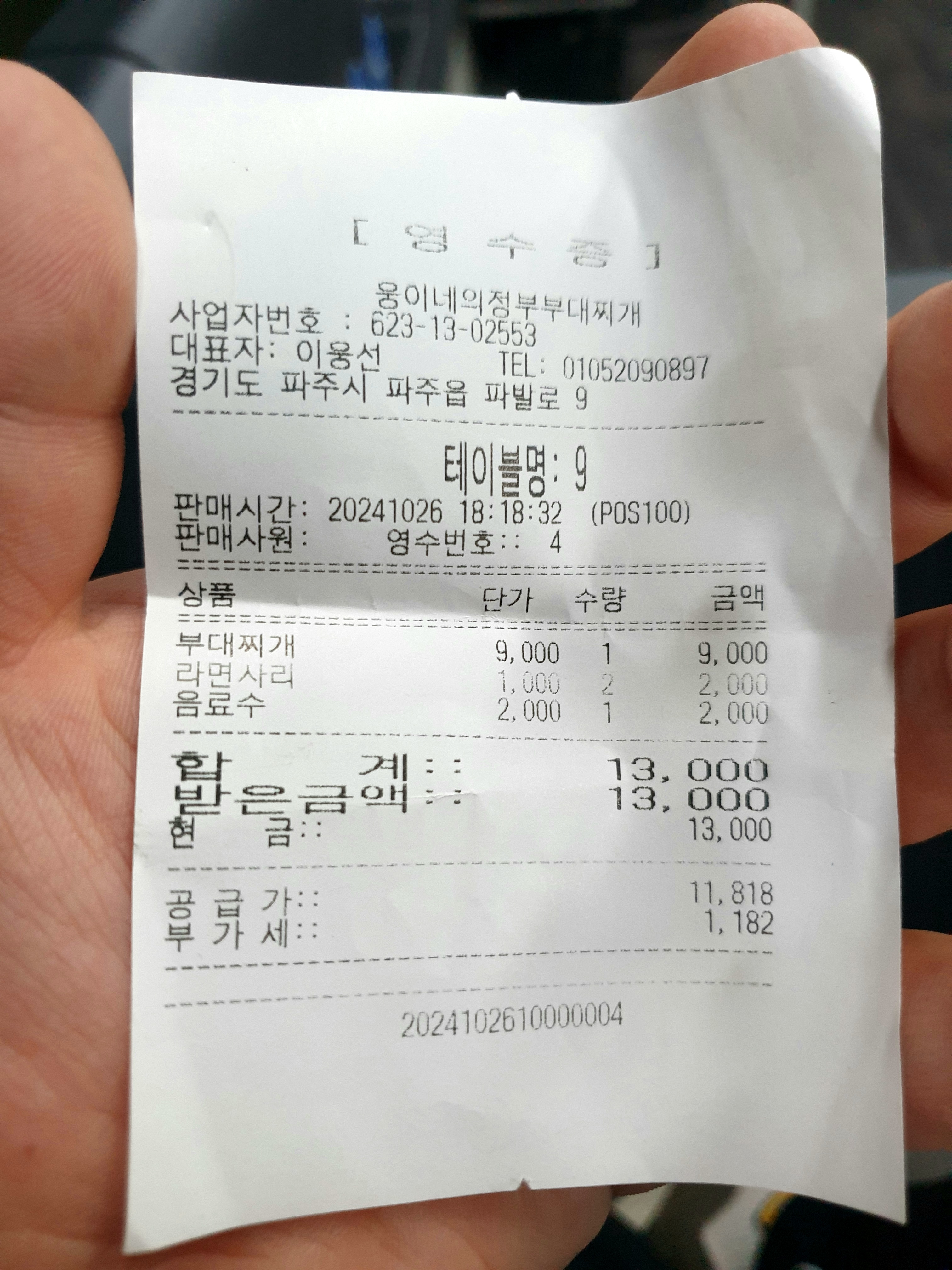 저녁은 파주읍에 있는 용이네 의정부 부대찌개에 다녀왔다.