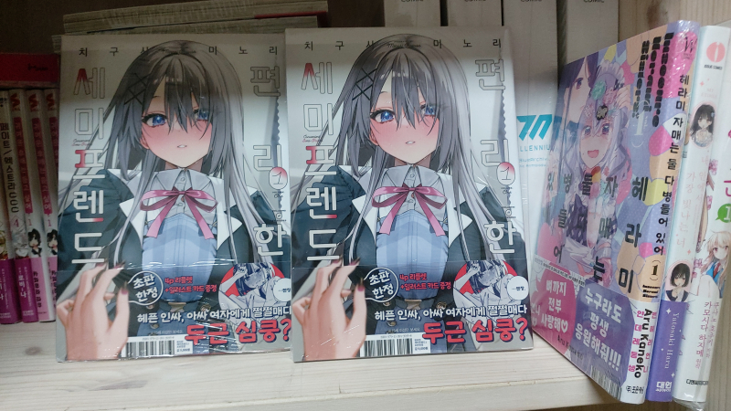 평범한송 편리한 세미프렌드 1권 만화책 재구입!~ [코믹] 작성일시 : 2024. 12. 14 (23:37) 조회 : 1,107 / 댓글 : 2 오늘 시내에 가서 편리한 세미프렌드 1권을 재구입을 했는데 이제 올려봅니다.백합물 만화책이고 개인적으로 작화까지 맘에 들어서 재구입을 했는데요.마지막 사진은 처음 구입했던 것과 같이 사진을 찍어봤네요. 3추천 글쓰기스크랩 신고