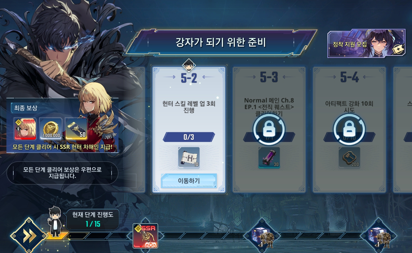야옹이 나혼렙 게임 지금 할만하네요 ㅋ [기타] 작성일시 : 2025. 02. 05 (10:40) 조회 : 925 / 댓글 : 1 강자가 되기 위한 준비하는데이거 미션 자체도 어렵지 않은데다가최종 보상으로 SSR 성해인, 100만 골드, 커스텀 50장에단계별로 보상 따로 줍줍해 스펙 올려보기 꽤 괜찮아요 픽업으로는 귀여운 에실 떠서열심히 광 캐면서 하고 있는 중 ㅋㅋㅋㅋㅋ 4추천 글쓰기스크랩 신고