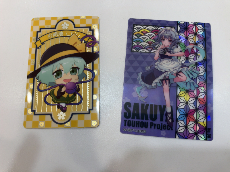 보라마키 아트박스에서 사온 동방프로젝트 콜렉트카드 [일반] 작성일시 : 2025. 02. 11 (16:34) 조회 : 895 / 댓글 : 0 어제 범계역 근처 일때문에 갔다가 일 끝나고 근처 아트박스에서 이것저것 사왔습니다.각각 메탈릭 카드랑 홀로그램 카드인데 코이시랑 사쿠야 나왔네요!! 3추천 글쓰기스크랩 신고