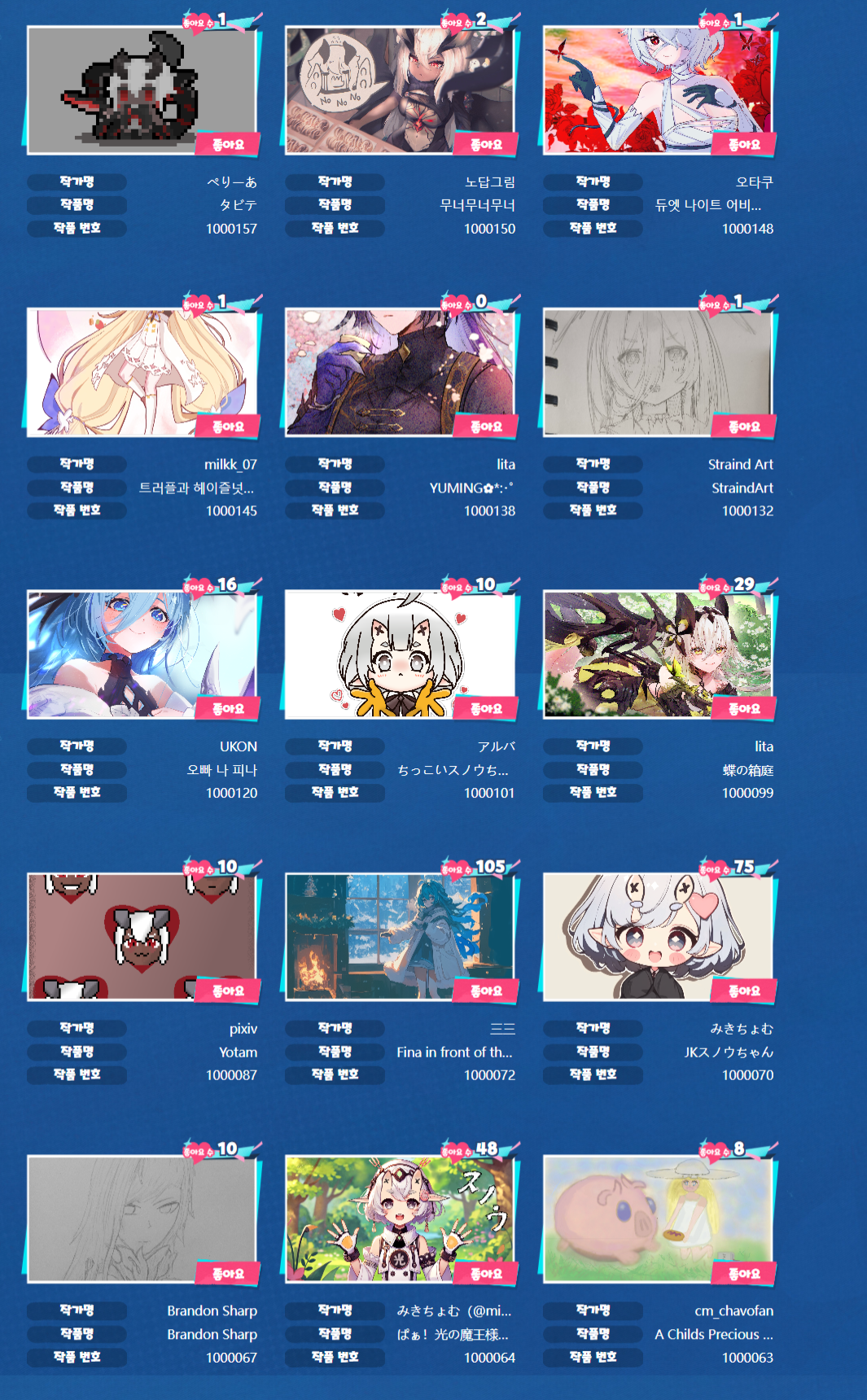 치토스 듀엣 나이트 어비스 팬아트 중 [일반] 작성일시 : 2025. 02. 28 (13:05) 조회 : 723 / 댓글 : 1 얘내 지금 경품 아이폰이랑 닌텐도랑 플스5랑 경품빵빵하게 걸고 팬아트 공모전하고 있어서 금손 유저들 참여 많이 하고 있거든요 저도 그림 영감 좀 얻을겸 이렇게 들어가서 구경하고 오는데 가끔 진짜 눈에 확뛰는 고퀄 팬아트가 눈에 보이던...그림 잘그렸으면 도전해볼텐데 ㅠ 4추천 글쓰기스크랩 신고