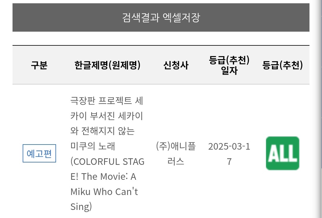 쇼케라 프로젝트 세카이 극장판 등급 심의 통과 [애니] 작성일시 : 2025. 03. 25 (15:34) 조회 : 778 / 댓글 : 1 슬슬 극장방영이 오겠네 6추천 글쓰기스크랩 신고