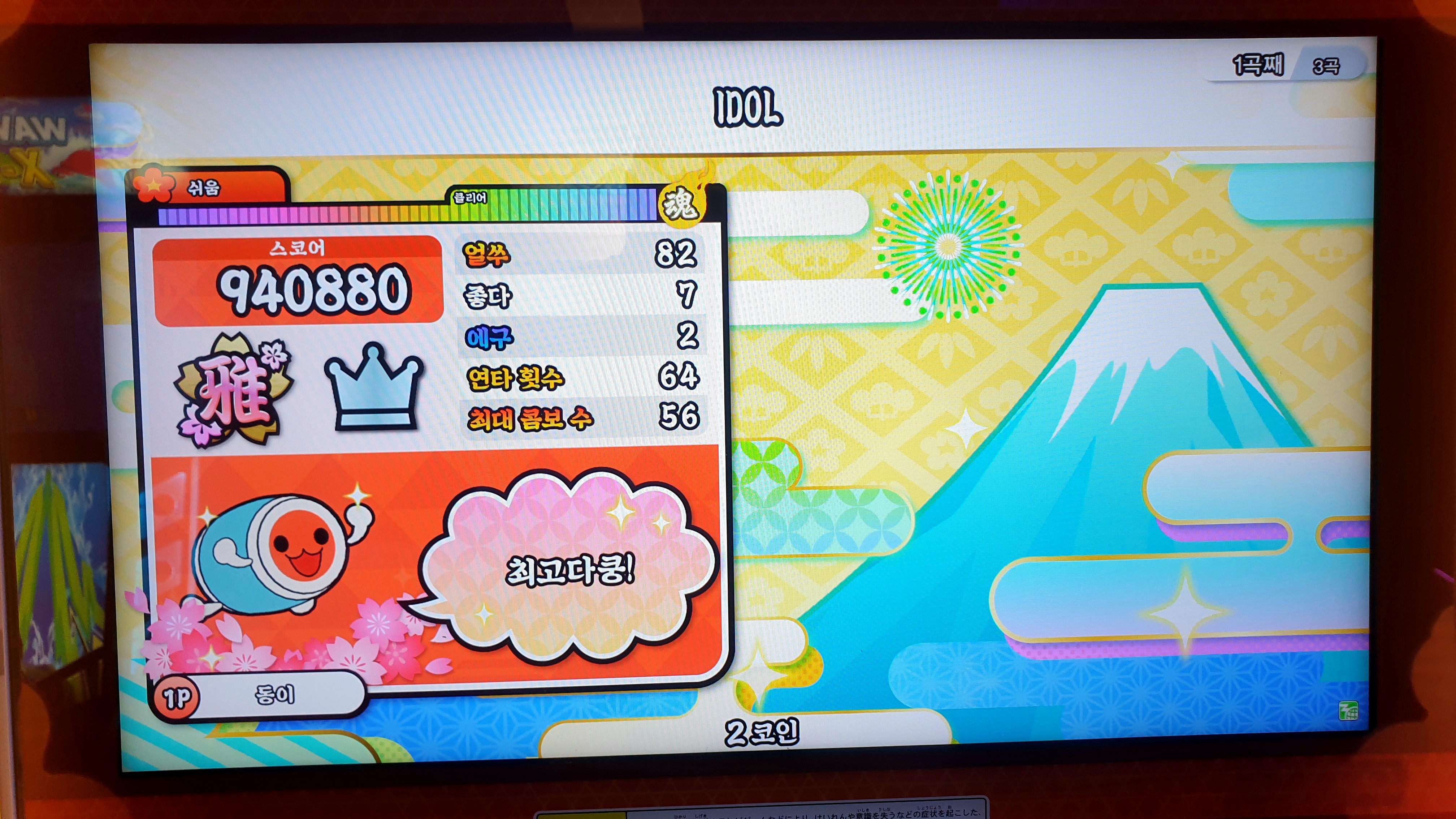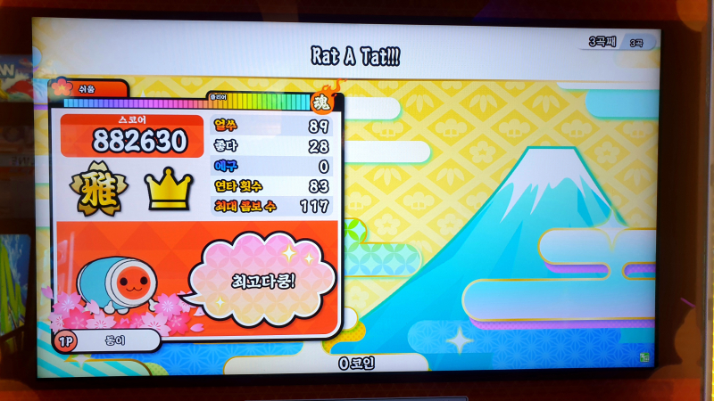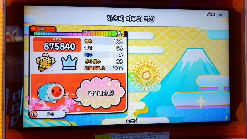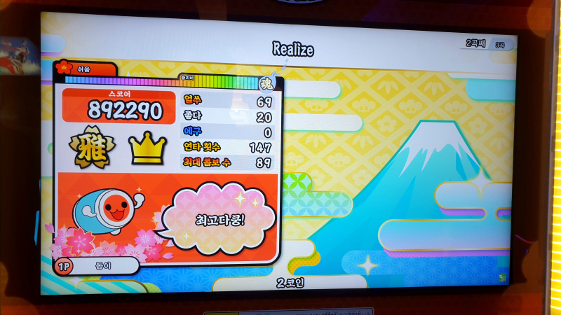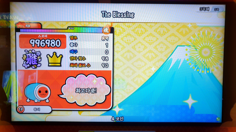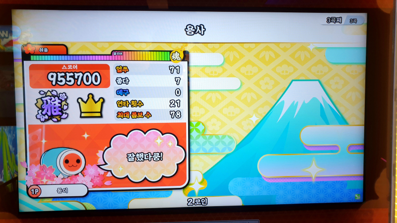 태고의 달인 북을 많이 쳤는데 손이 빨개졌다오~
