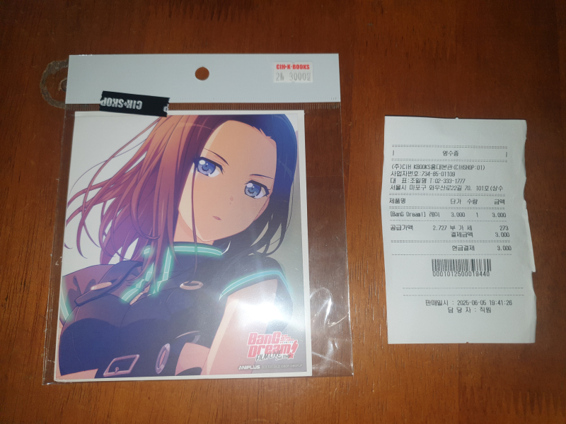 잠깐 홍대입구에 있는 만화 굿즈샵으로 다녀왔다오~ 뱅드림 레이즈 어 스이렌 멤버 나온 와카나 레이 색지 1개 사고~