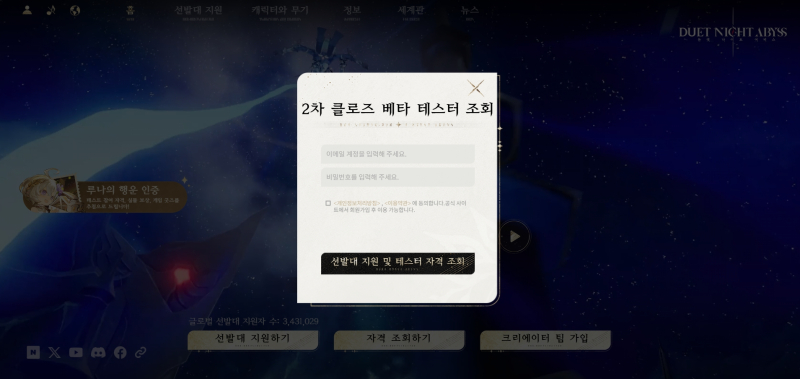 테드윌리엄스 듀엣 나이트 어비스 CBT 드디어 시작되는구나 [일반] 작성일시 : 2025. 06. 09 (16:22) 조회 : 604 / 댓글 : 1 6월 12일부터 듀엣 나이트 어비스 2차 CBT가 진행되는데 지금 공식 홈페이지에서 클베 테스터로 당첨 됐는지 확인할 수 있거든요테스터 자격 신청한 사람들은 지금 가서 조회 한 번 해보세요 이거 노리고 있던 사람들 꽤 많아서 경쟁률 좀 치열했을 것 같긴한데ㄷㄷ오늘 저녁 8시에 2차 CBT 기념 특별 방송 예정되어 있는데 당첨된 사람들은 게임 시작하기 전에 방송 꼭 보고 시작해봐야할 듯 3추천 글쓰기스크랩 신고