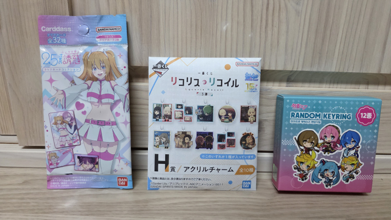 평범한송 1달만에 구입한 굿즈들 [굿즈] 작성일시 : 2025. 06. 14 (17:47) 조회 : 529 / 댓글 : 6 1달만에 시내에 가서 굿즈 3개를 구입했습니다.구입한 굿즈 3개는 애니 굿즈 2개와 보컬로이드 굿즈 1개인데 먼저 애니 굿즈 2개는 애니굿즈샵 2군데에서 구입했는데요.애니굿즈 1개는 2.5 차원의 유혹 클리어카드 1장이고 다른 하나는 리코리스 리코일 제일복권 굿즈 1개입니다.보컬로이드 굿즈 1개는 애니굿즈샵이 아닌 아트박스에서 구경하다가 보이길래 그냥 하나 사왔네요. 4추천 글쓰기스크랩 신고