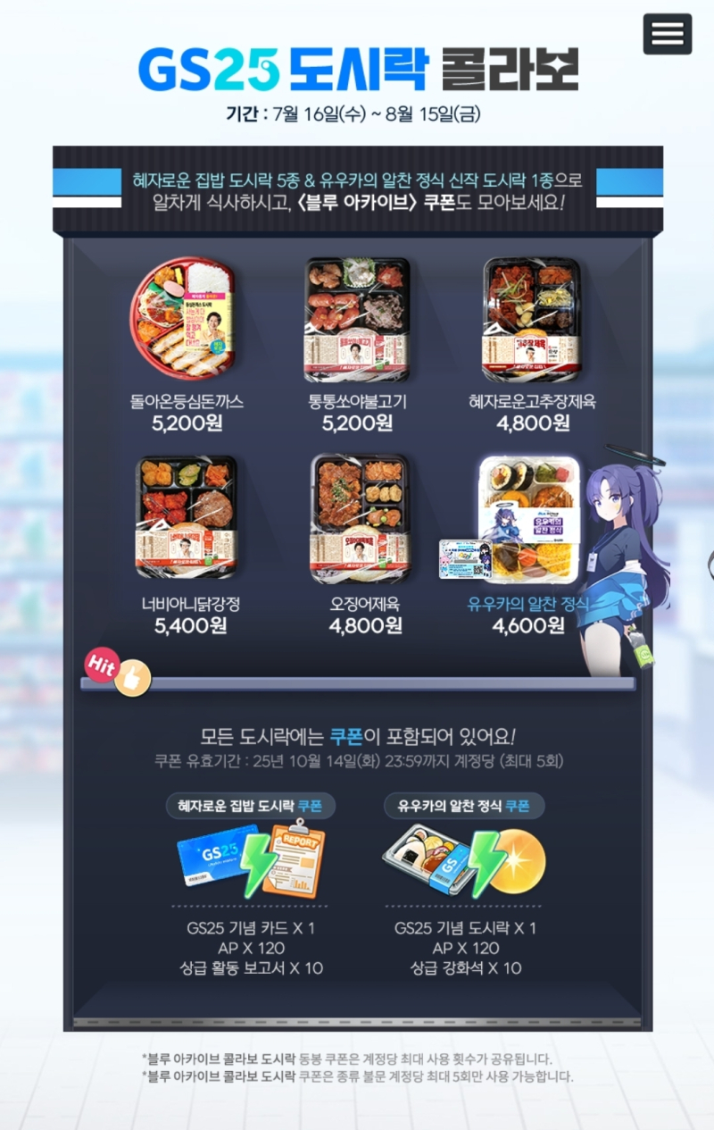 블루아카이브 X GS25 콜라보 상품 리스트