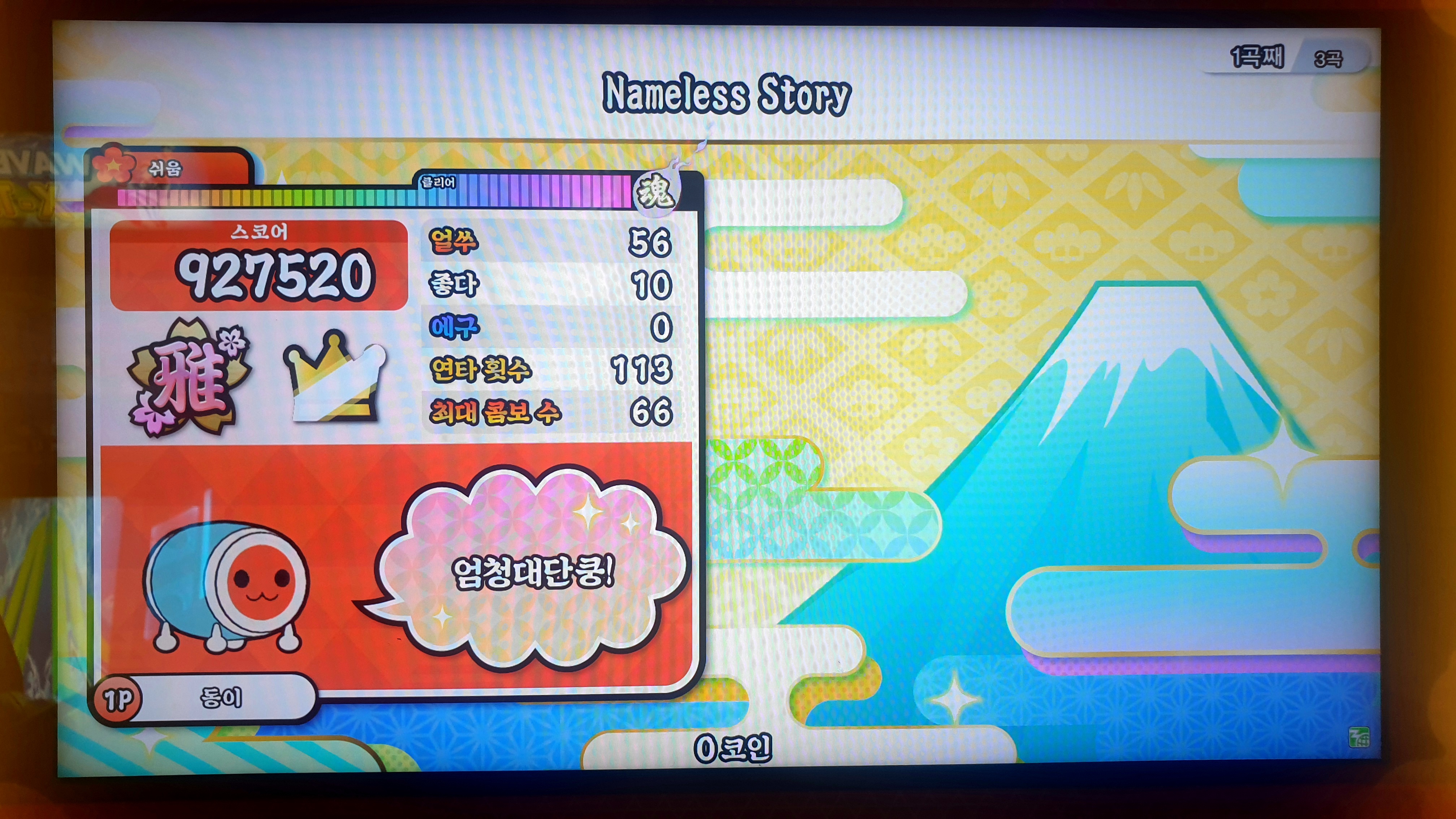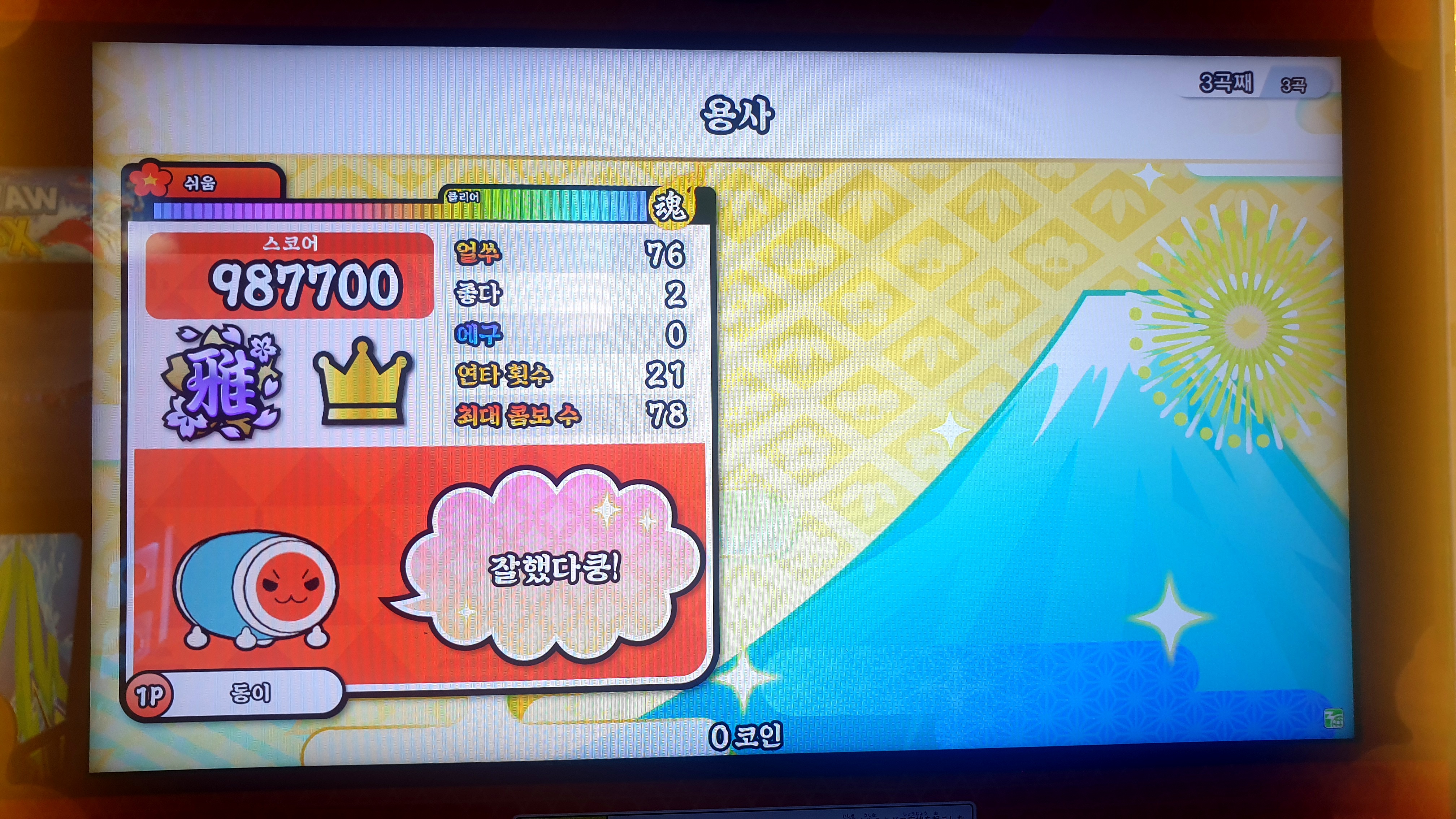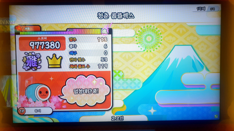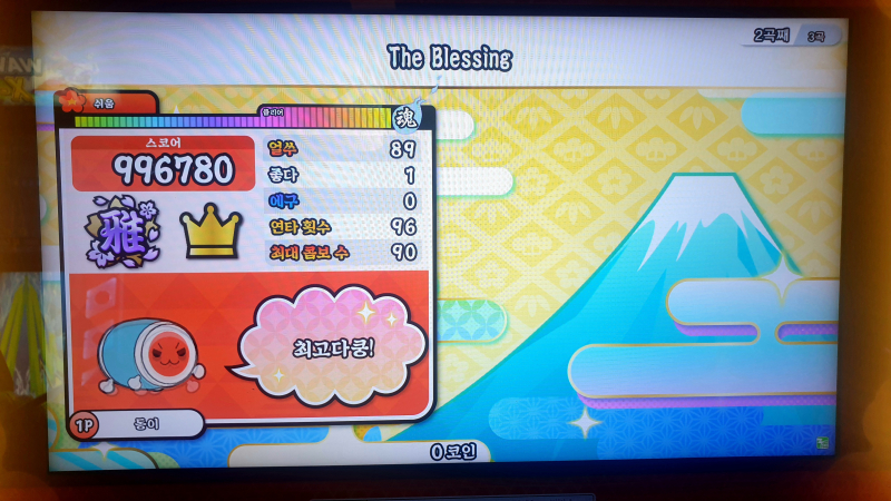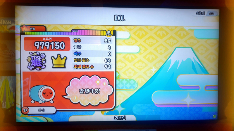 내가 좋아하는 게임 태고의 달인 북을 쳤더니 땀 많이 흘렸다오...