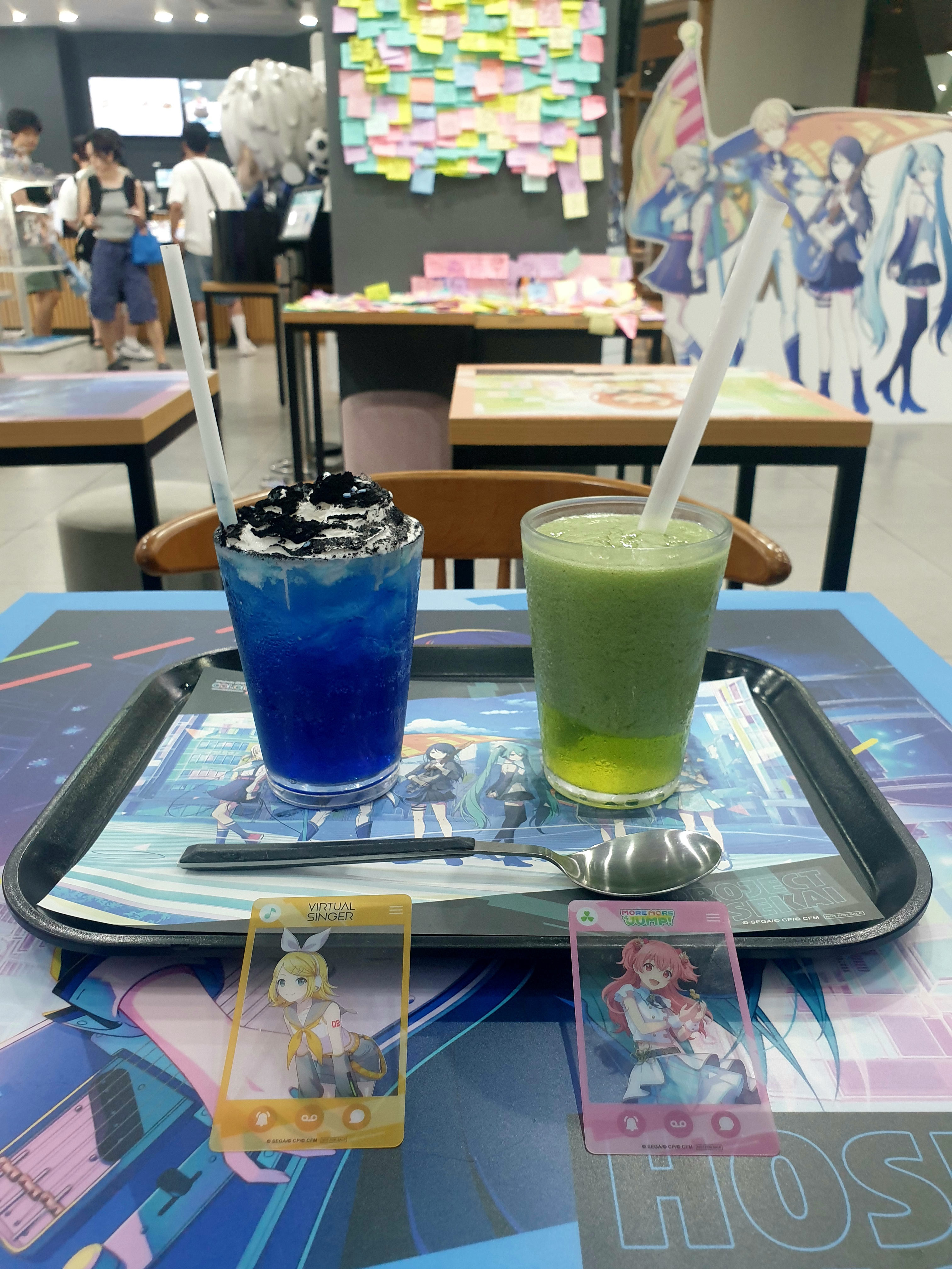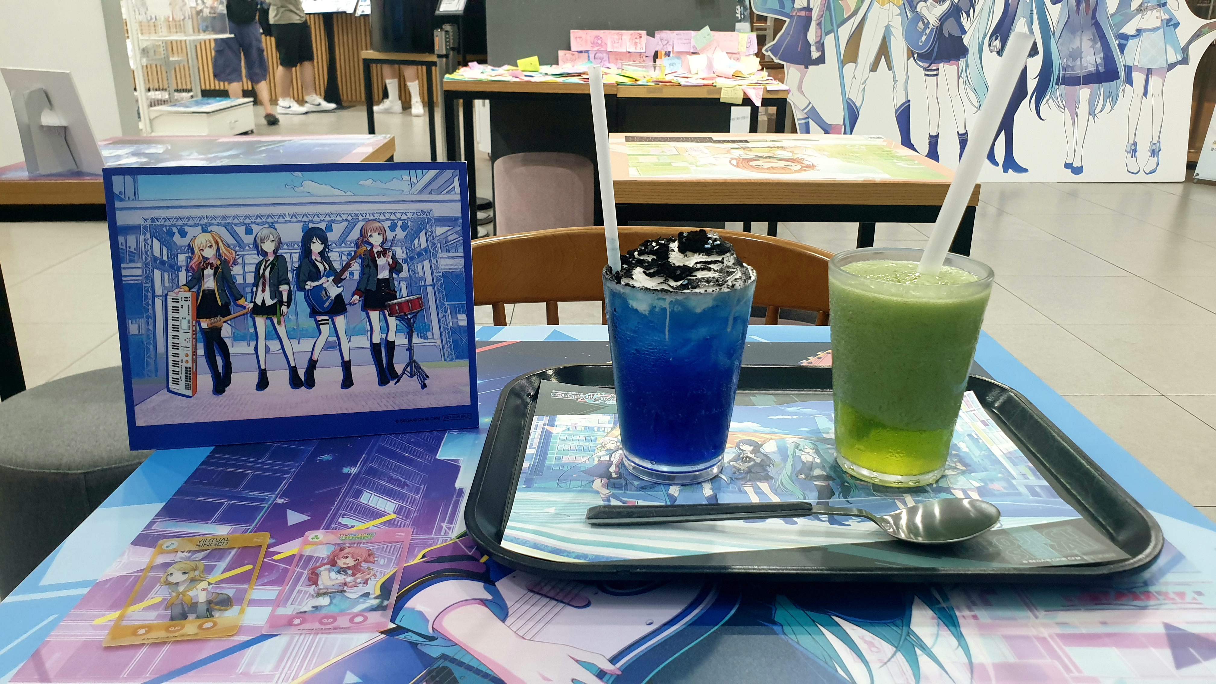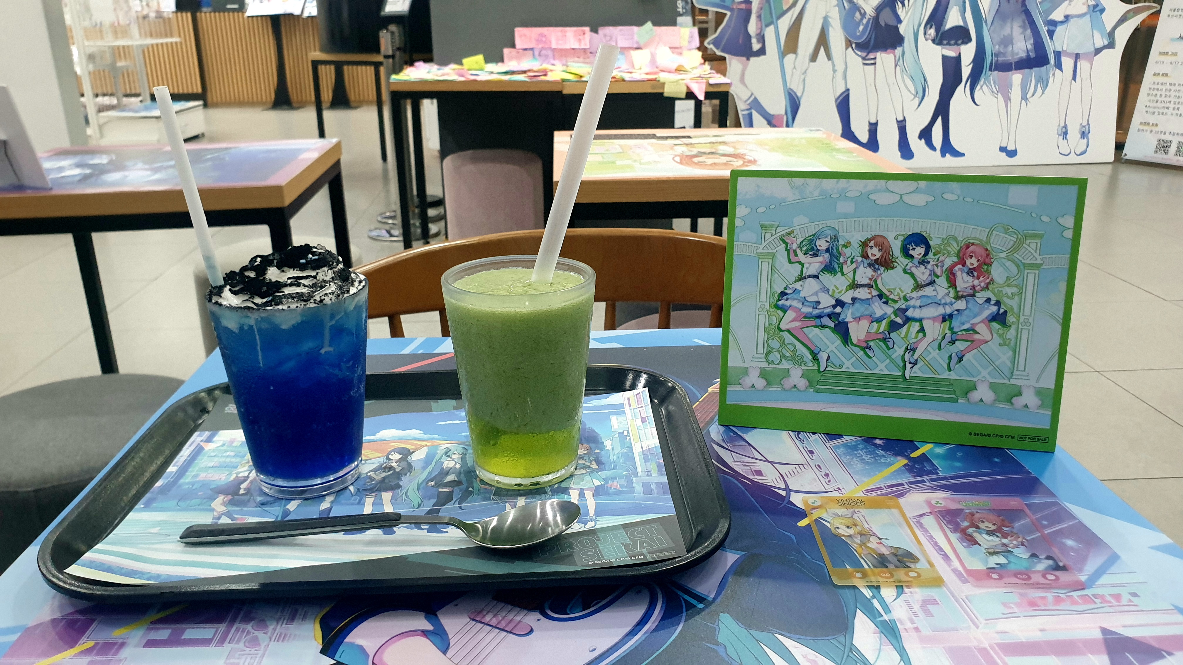 프로젝트 세카이 콜라보카페 5~6주차인데 두번째 6주차로 다녀왔다오~ 카페로 둘러보고~ Leo/need 블루 레몬에이드 & MORE MORE JUMP 키위 스무디 합쳐사 13000원이라오~ 마시고~