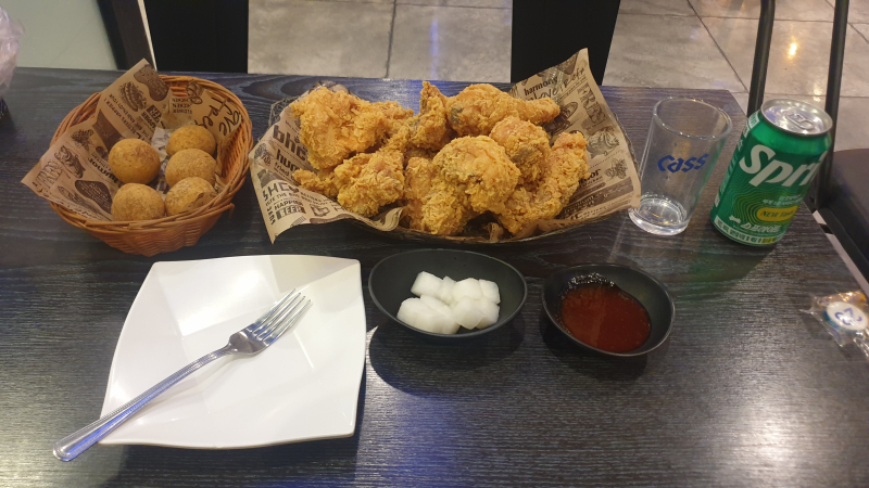 해바라기 후라이드 한마리 & 달콤바삭치즈볼까지 맛있게 먹었다오~ 가격은 31500원이라오~