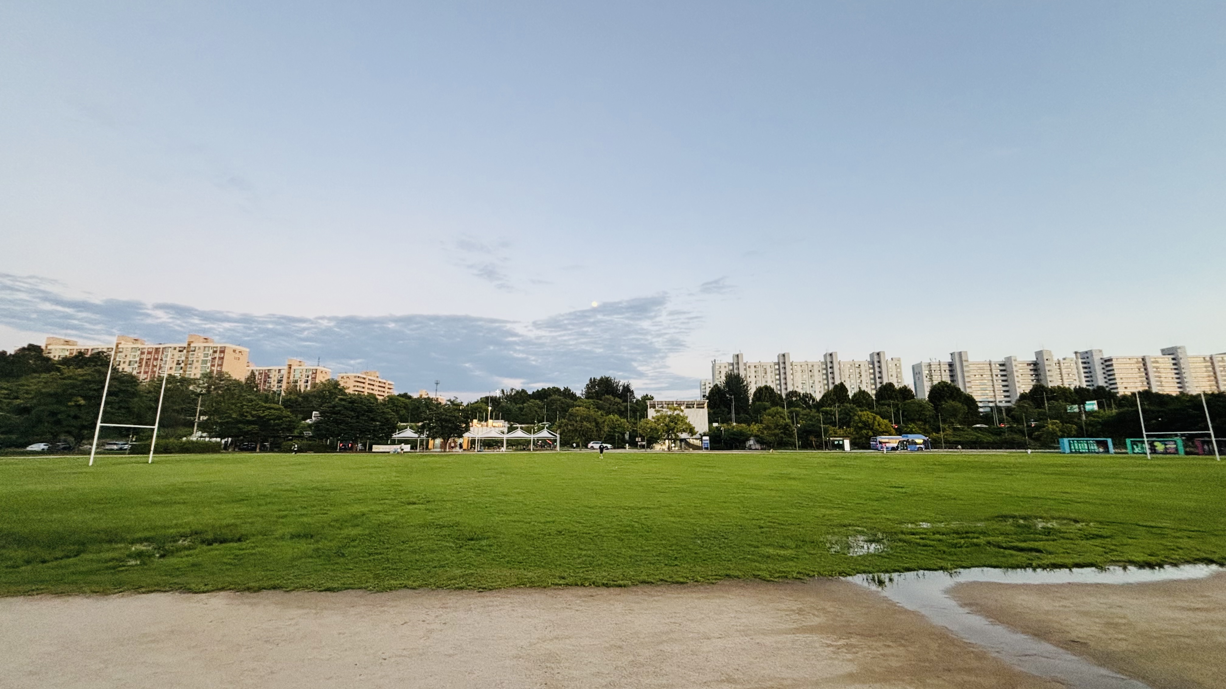 오늘 아침에 온 비로 인해 그라운드 상태는 그렇다쳐도 잔디에 잡초가 많이 자라 있습니다