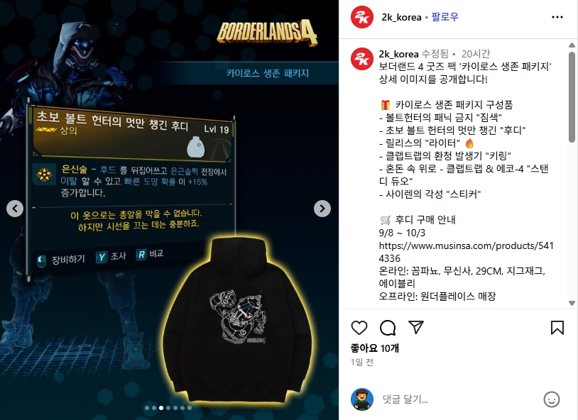 치토스 보더랜드4 후드티 굿즈 삼 [일반] 작성일시 : 2025. 09. 12 (16:38) 조회 : 535 / 댓글 : 0 이거 무신사에도 입점 했군요 할인 땡기고하면 걍 딱 후드티 가격인거 같기도하고그냥 나 게임 콜라보 굿즈다 이렇게 티나게 만든 것도 아니라서일상복으로 입고 다니기도 좋아보임요 3추천 글쓰기스크랩 신고