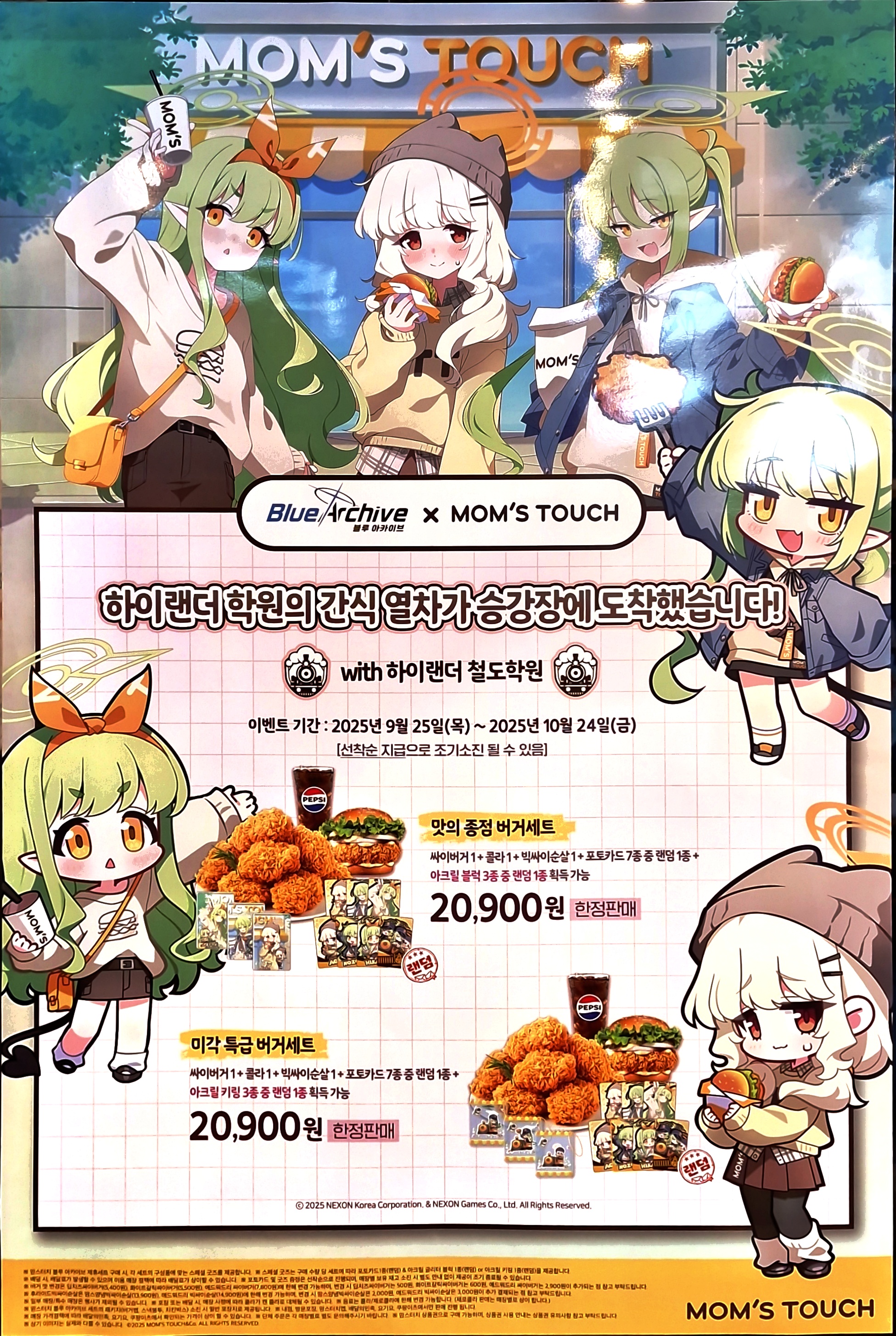 마린레빗 맘스터치 블아 콜라보 [굿즈] 작성일시 : 2025. 09. 25 (17:36) 조회 : 1,069 / 댓글 : 5 오늘 맘스터치에서 블루아카이브 콜라보 첫날에 맛있게 먹고있습니다.전 미각특급세트를 골맀는데요. 미각특급은 아크릴 키링 랜덤으로 나오게 되어있습죠.짠! 왼쪽에는 아크릴키링의 아오이 오른쪽에는 포토카드의 노조미 8추천 글쓰기스크랩 신고