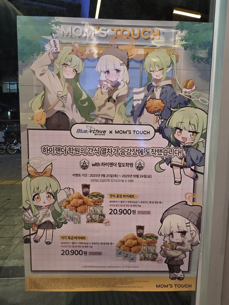 어제 목요일 홍대에 있는 체인소 맨 전시회 둘러보고~ 홍대 애니메이트, CIH SHOP 둘러보고~ 맘스터치 LAB 명동점에 다녀와서 블루 아카이브 세트로 맛있게 사 먹었다오~