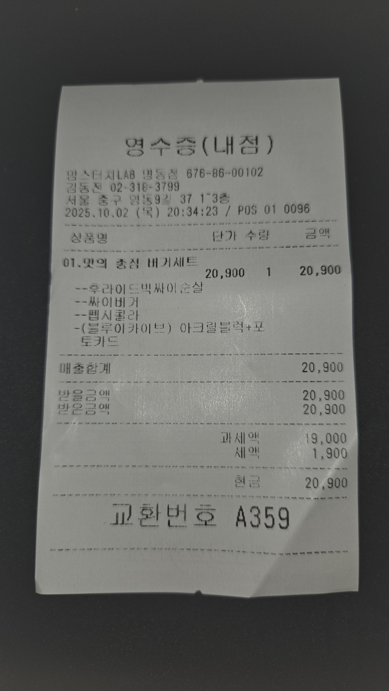 1년만이다~ 저녁으로 맘스터치 LAB 명동점으로 다녀왔다오~