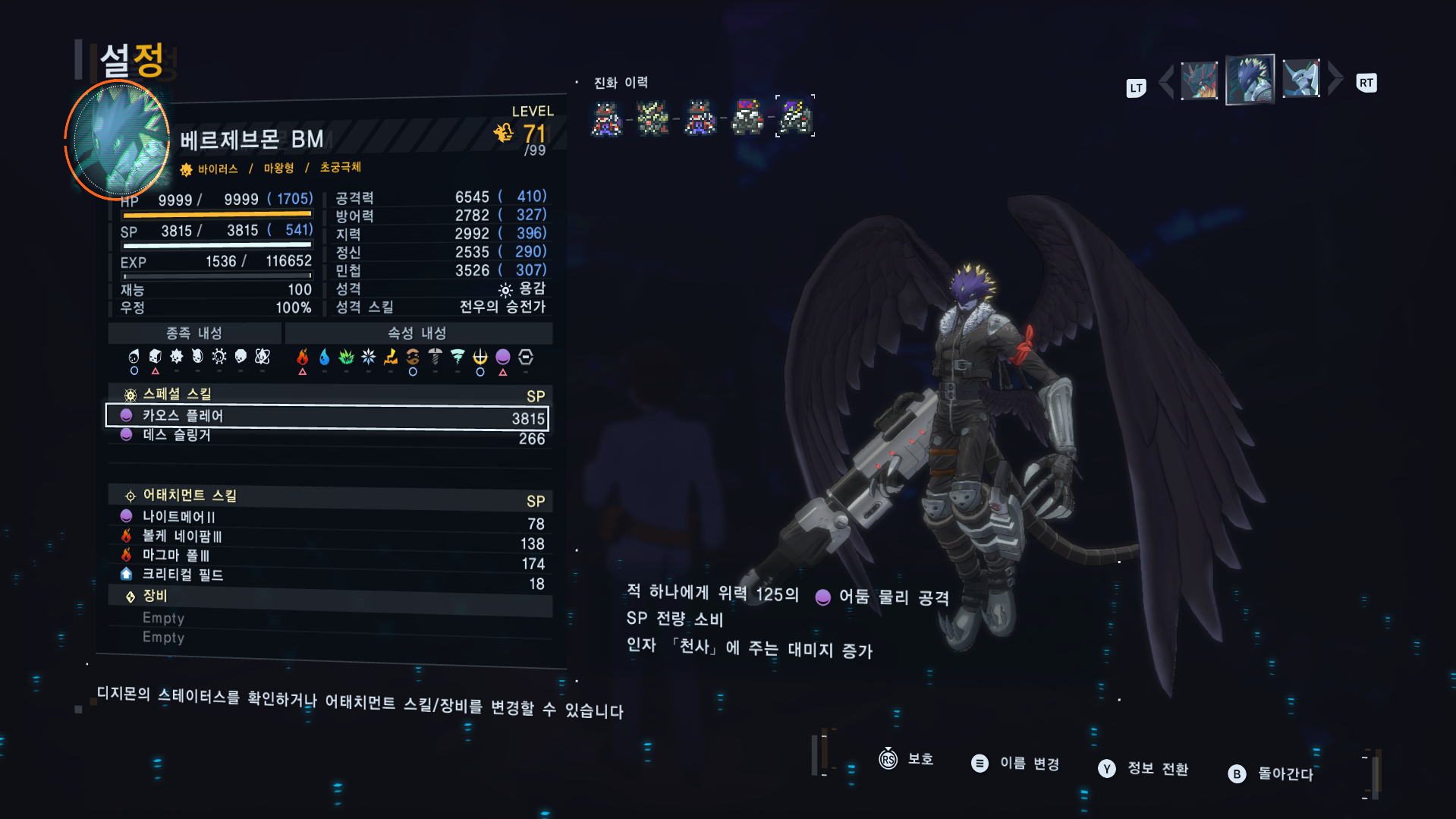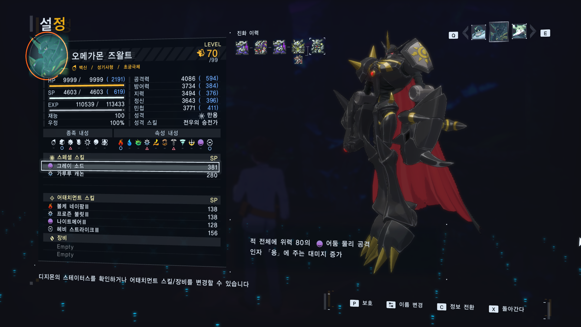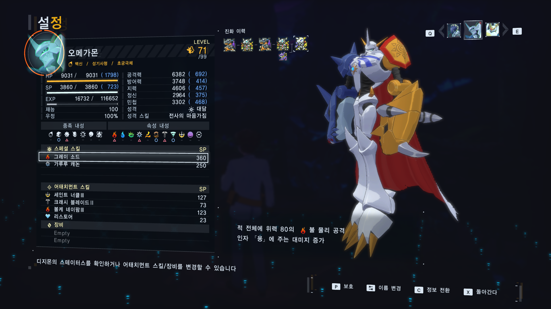 레벨0 디지몬 신작게임 최종전전 초궁극체 만들기 [일반] 작성일시 : 2025. 10. 07 (19:56) 조회 : 476 / 댓글 : 2 설마 오메가몬이 형태변환으로 즈왈트 가능할 줄이야...괜히 둘이나 만들었네...성격작이랑 없는 디지몬 만들겠다고 진화 퇴화 하느라 엄청 시간 잡아 먹었는데 ㅋㅋㅋㅋ파피맨은 우정 올리기 위해 서브퀘 하다가 포기 ㅋㅋㅋ 3추천 글쓰기스크랩 신고