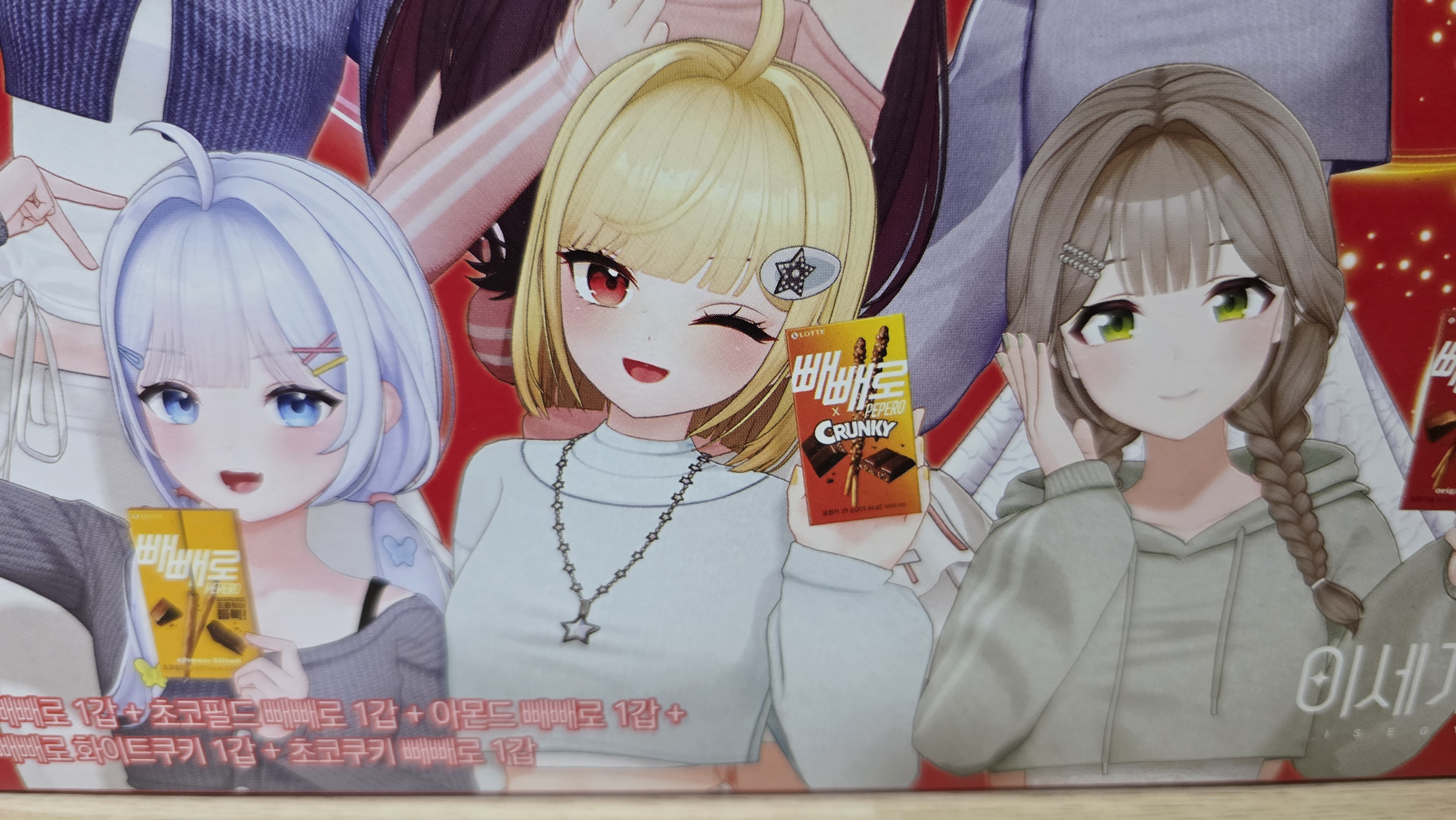 평범한송 이마트에서 구입한 빼빼로 과자 [일반] 작성일시 : 2025. 10. 16 (23:37) 조회 : 582 / 댓글 : 12 오늘 퇴근하고 이마트에 가서 빼빼로 과자를 구입했습니다.빼빼로 과자인데 이세계 아이돌 캐릭터들 있는 걸 봐서 콜라보 제품으로 보이는데요.저는 이세계 아이돌 이름만 들어본 적만 있으며 팬은 아니지만 어떤 건지 궁금해서 하나 구입했는데요.과자에 크런키 든 단발 캐릭터를 보니깐 개인적으로 리코리스 리코일 애니에 치사토가 생각나더군요. 4추천 글쓰기스크랩 신고