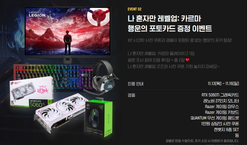 치토스 나혼렙 카르마 부스 가봐야지 [일반] 작성일시 : 2025. 11. 12 (18:35) 조회 : 434 / 댓글 : 0 올해 지스타 재밌겠다 나혼렙 카르마 부스에서 5060Ti 경품도 있구만레노버 27인치는 FHD겠지 아마트레일러보는데 괜찮던데 겜 체험해보고만원 상당 사전 쿠폰만 받아도 좋을듯 3추천 글쓰기스크랩 신고