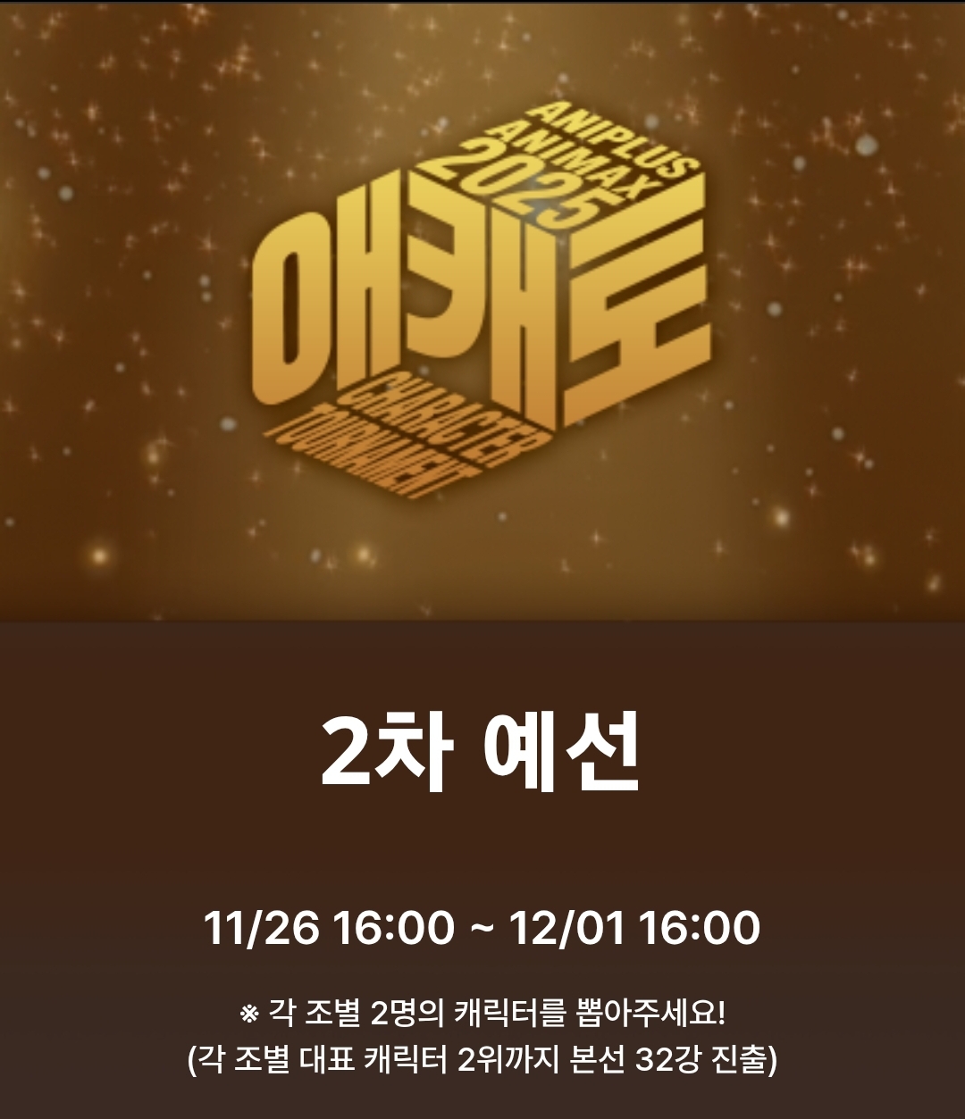 안달뷩 잠시후 오늘 오후 4시부터 2차 예선 투표를 시작합니다~!!👍👍💕💕 [일반] 작성일시 : 2025. 11. 26 (15:00) 조회 : 274 / 댓글 : 3 출처(링크) : https://naver.me/FFa8xdDX 5추천 글쓰기스크랩 신고
