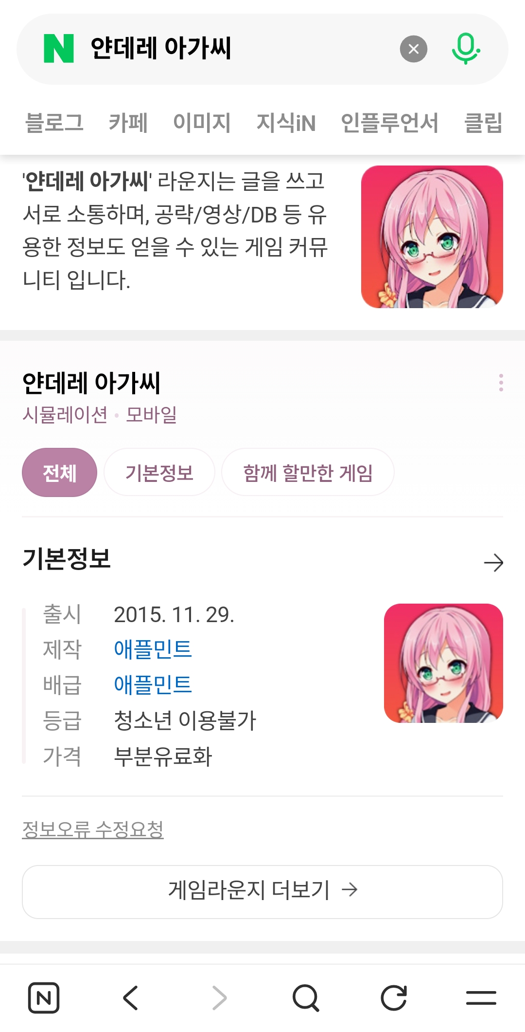 평범한송 이거 아직 있나 보군요. [일반] 작성일시 : 2025. 12. 29 (20:56) 조회 : 331 / 댓글 : 5 제가 고등학교 때 스마트폰으로 얀데레 아가씨 시뮬레이션을 했던 기억이 나길래요.그후로 스마트폰으로 게임을 하지 않는데 갑자기 생각나길래 간만에 검색해보니 아직 이 시뮬레이션이 있나 보네요. 3추천 글쓰기스크랩 신고